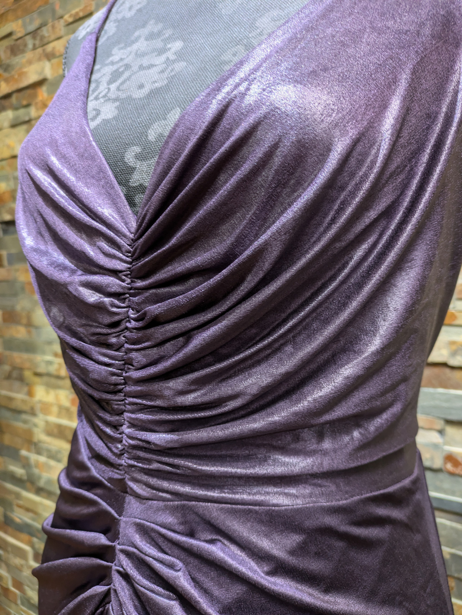 Aubergine Stretchy Ruched Spaghetti Strap Gown, Size 16