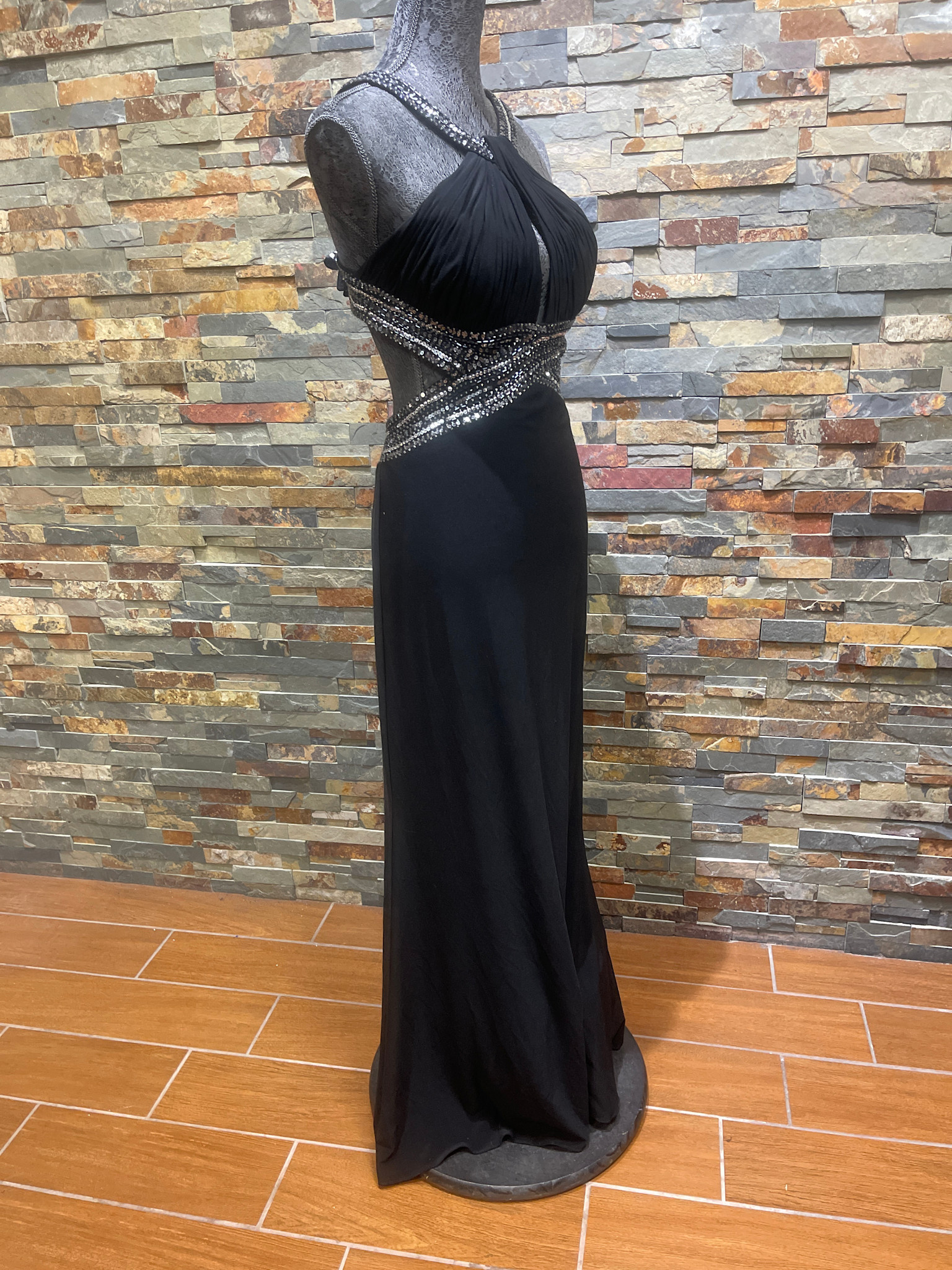 Black Backless Gown with Silver Sequin Waist & Collar, Size 14