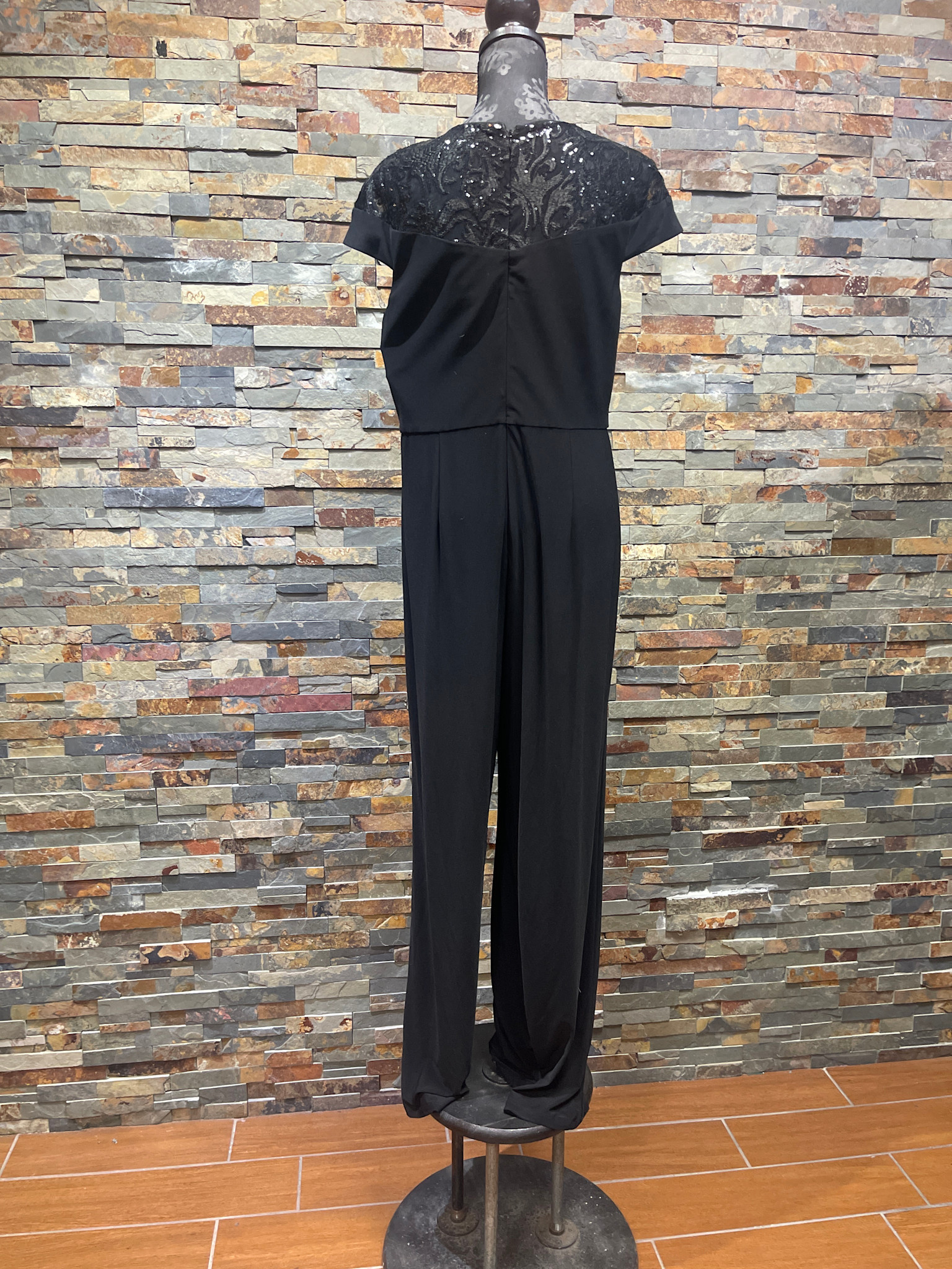 Black Cap Sleeved with Sequin V Neckline Jumpsuit, Size 12