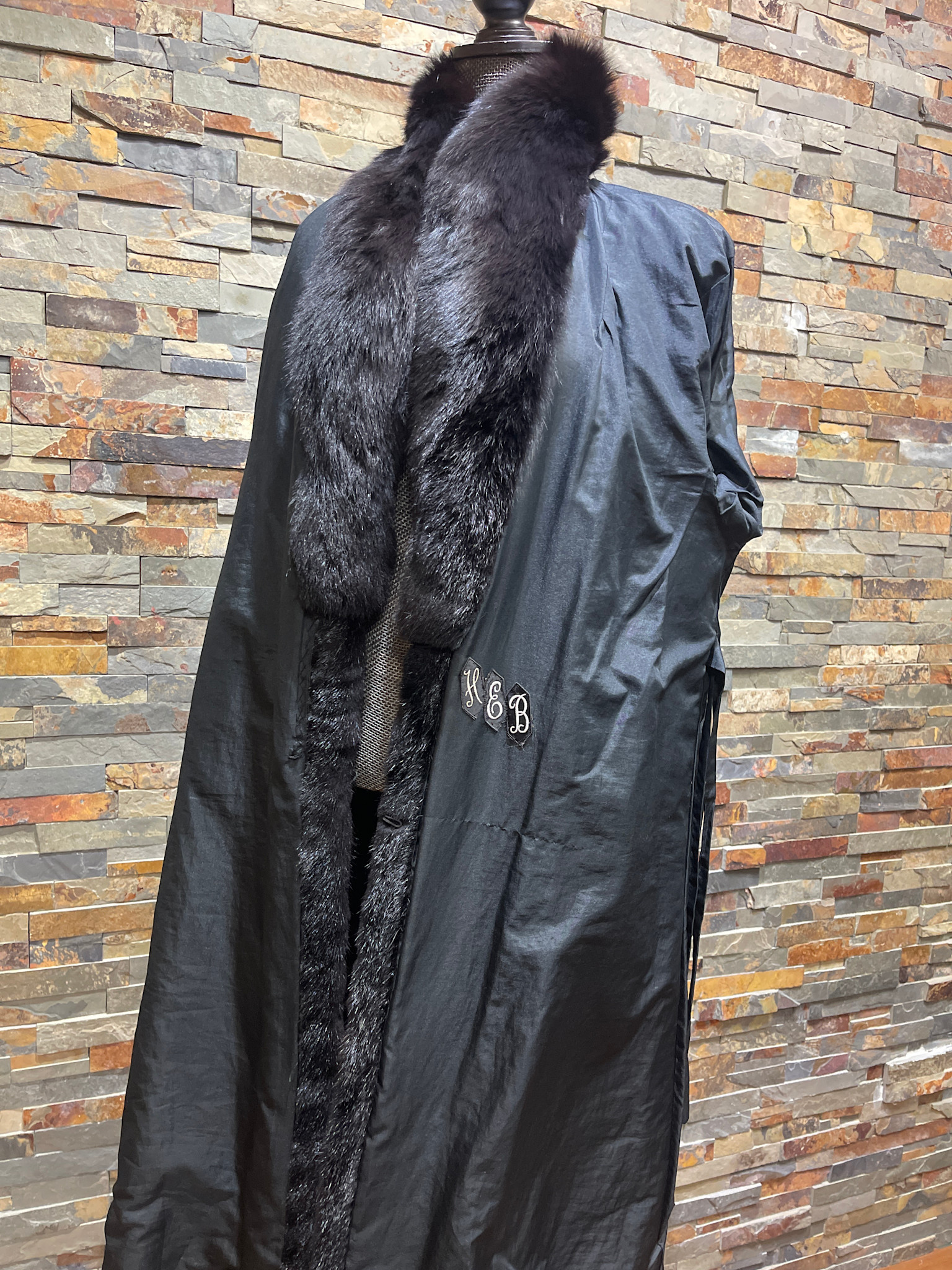 Black Mink Sections with Black Fox Collar Coat, Size M