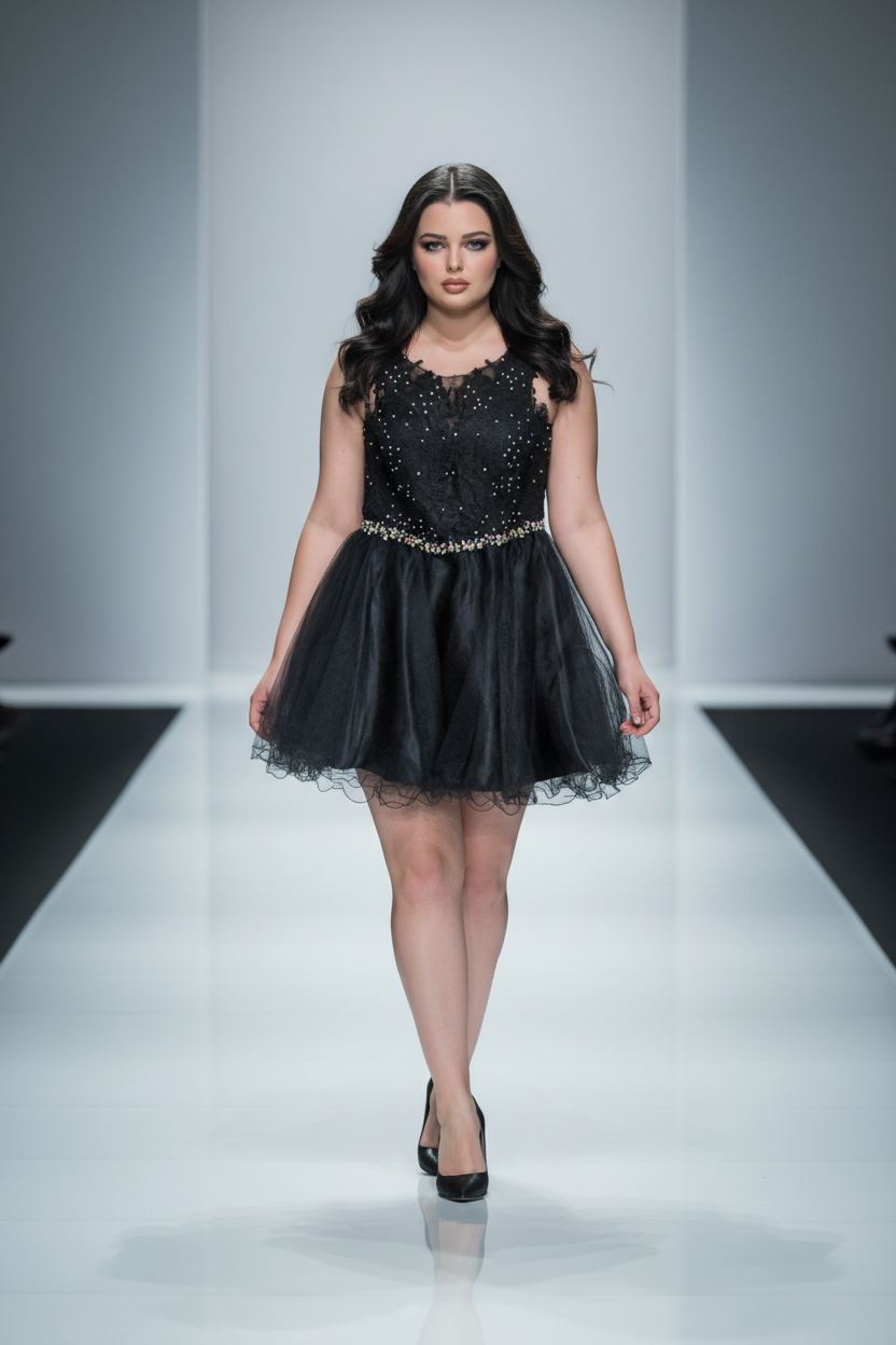 Black Party Dress w/Lace & Embellishments, Size XL