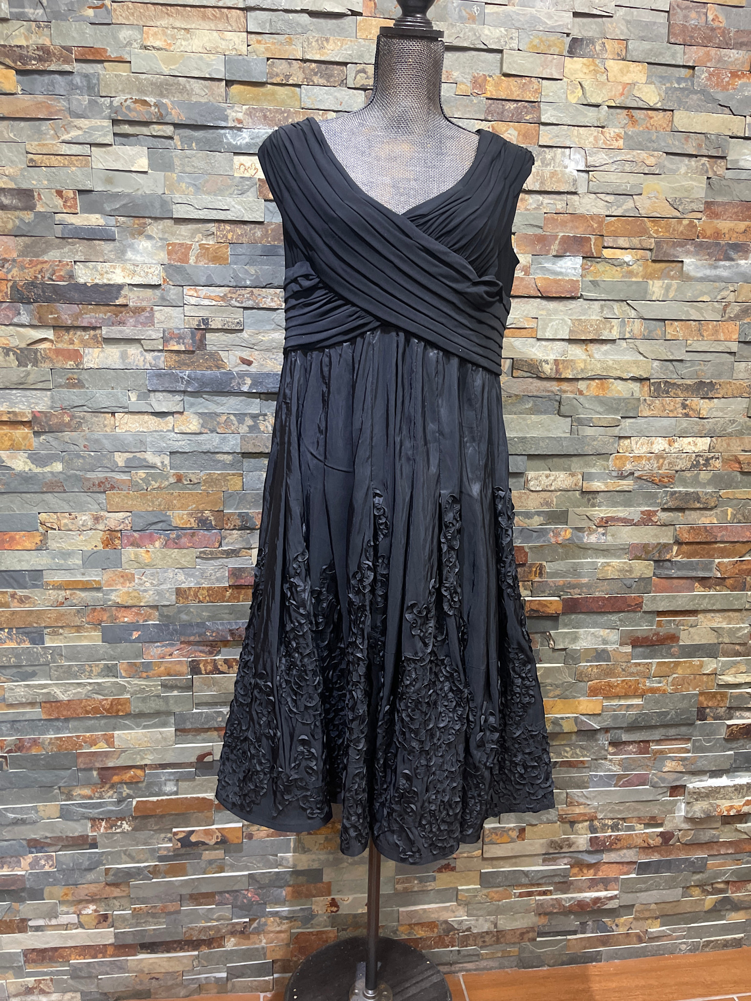 Black Ruched Top with Full Floral Textured Skirt Dress, Size 16W