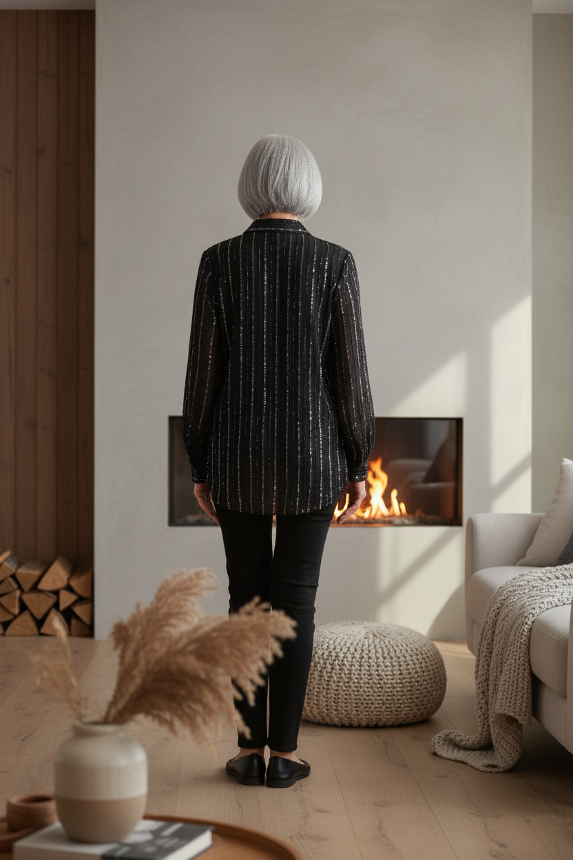 Black Silk Blouse with Beads & Sequins, Size 2X