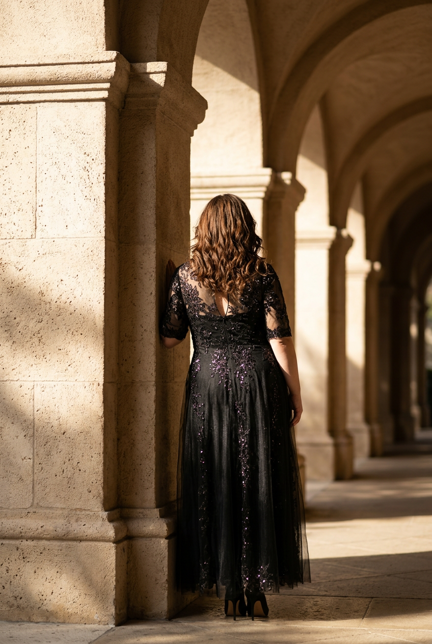 Black Tulle Overlay with Floral Embellishments Gowm, Size 14