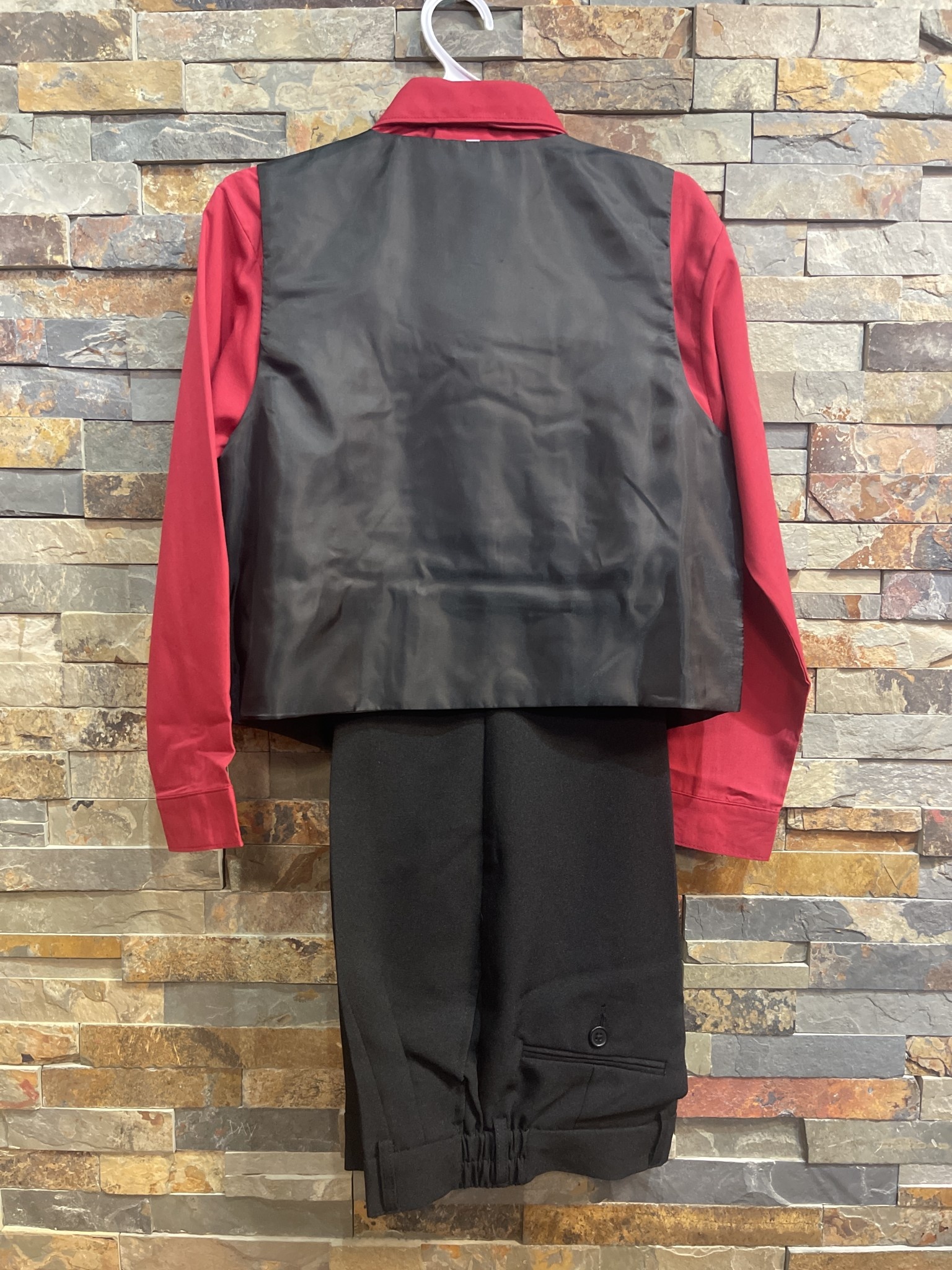 Black Vest & Pants W/ Red Shirt, Tie and Pocket Square
