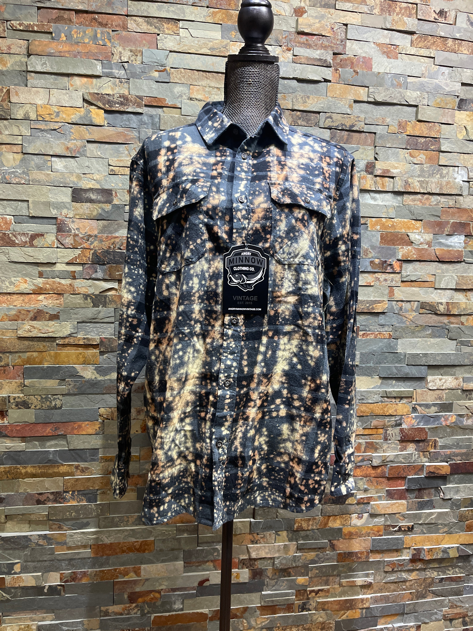 Bleached Blue Buffalo Plaid Let's Drink Beer & Judge People Flannel Shirt, Size L