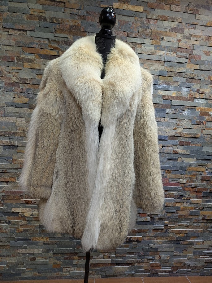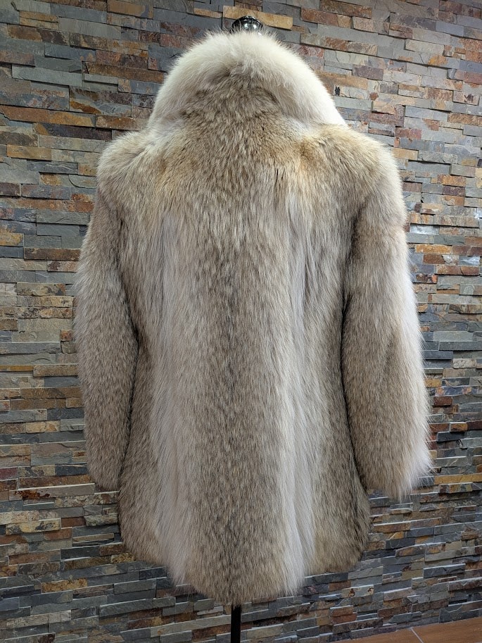 Canadian Coyote Fur Coat with Shawl Collar, Size M