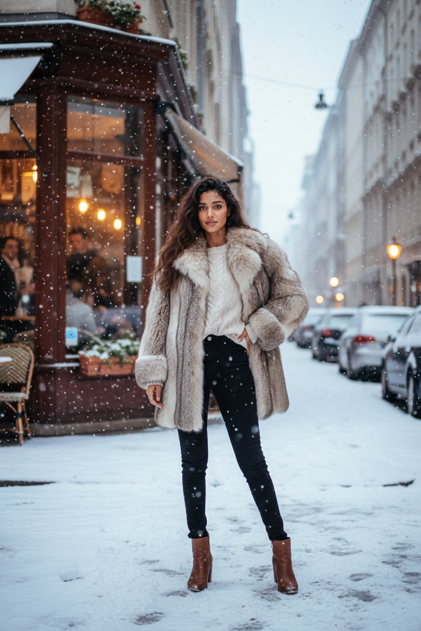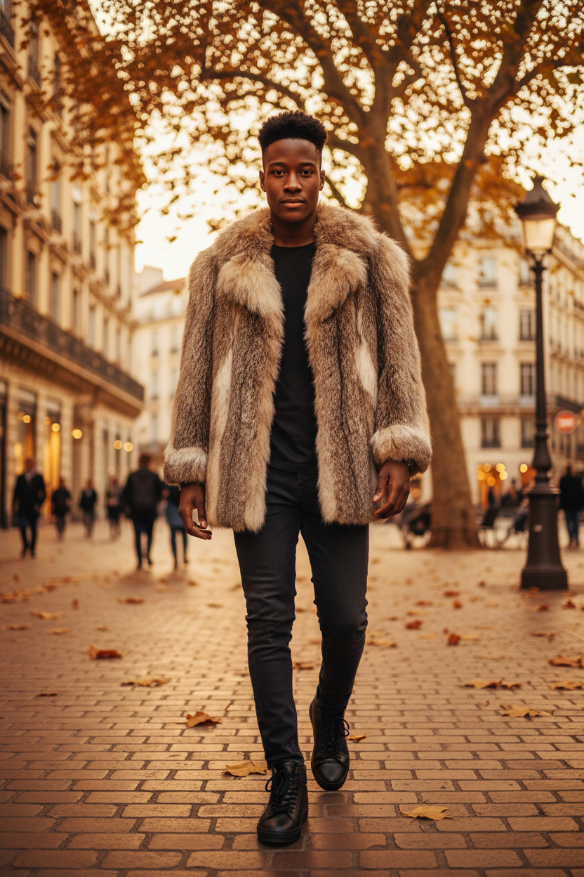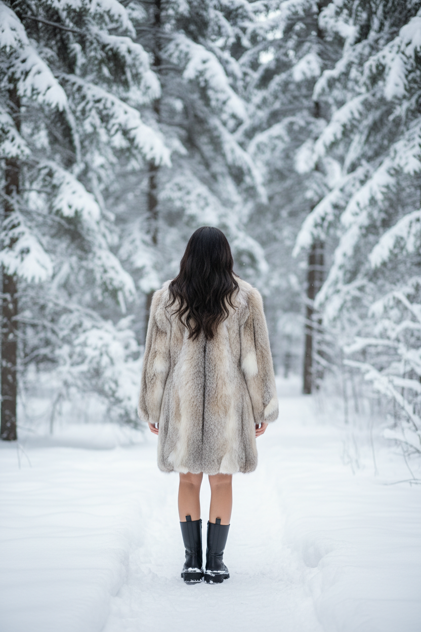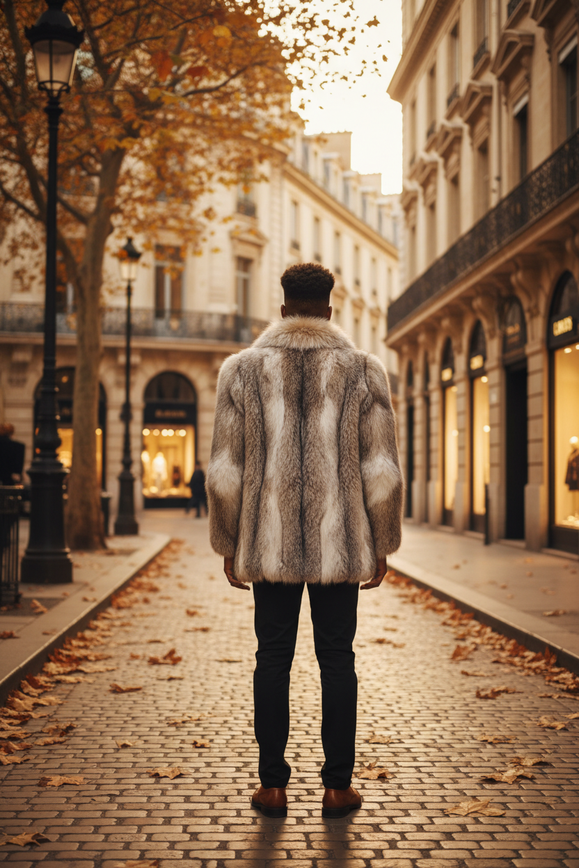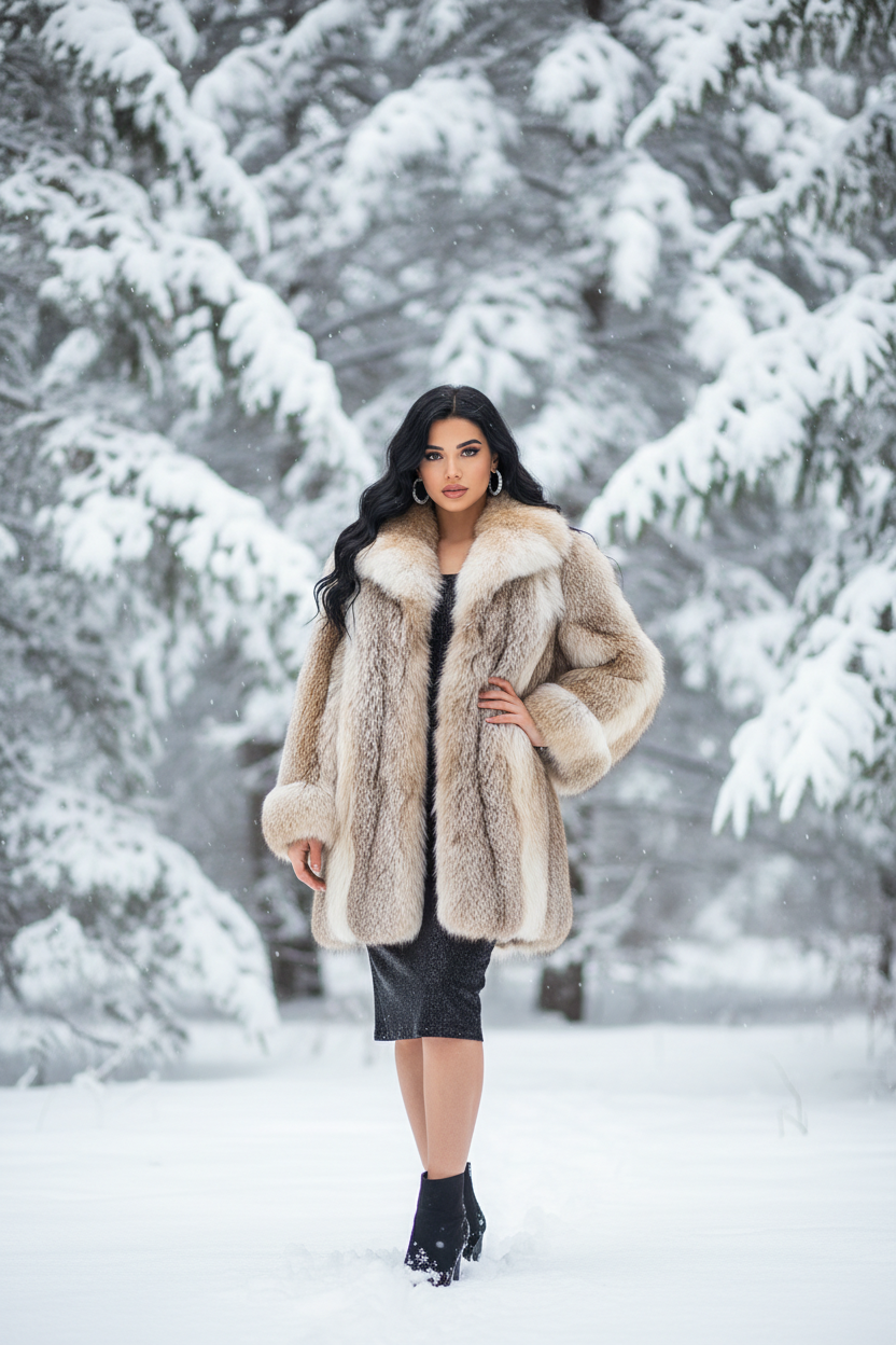 Canadian Lynx Fur Stroller with Notched Lapel, Size XL