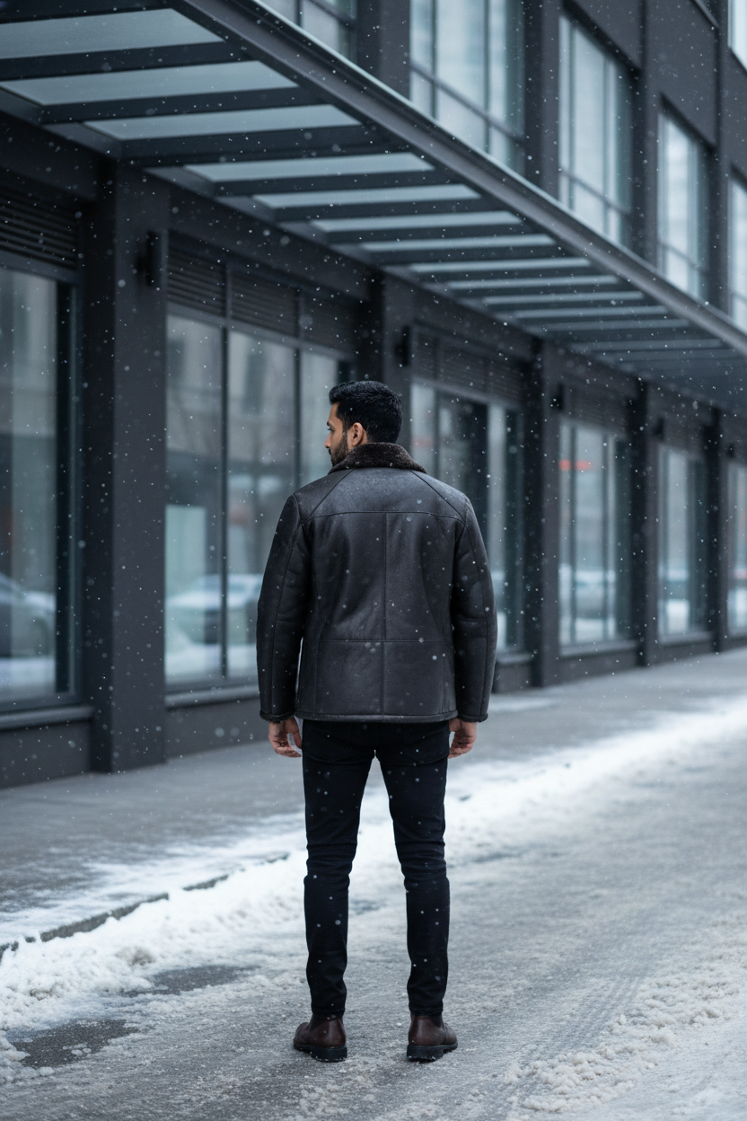 Dark Brown Spanish Lamb Shearling Jacket, Size XL