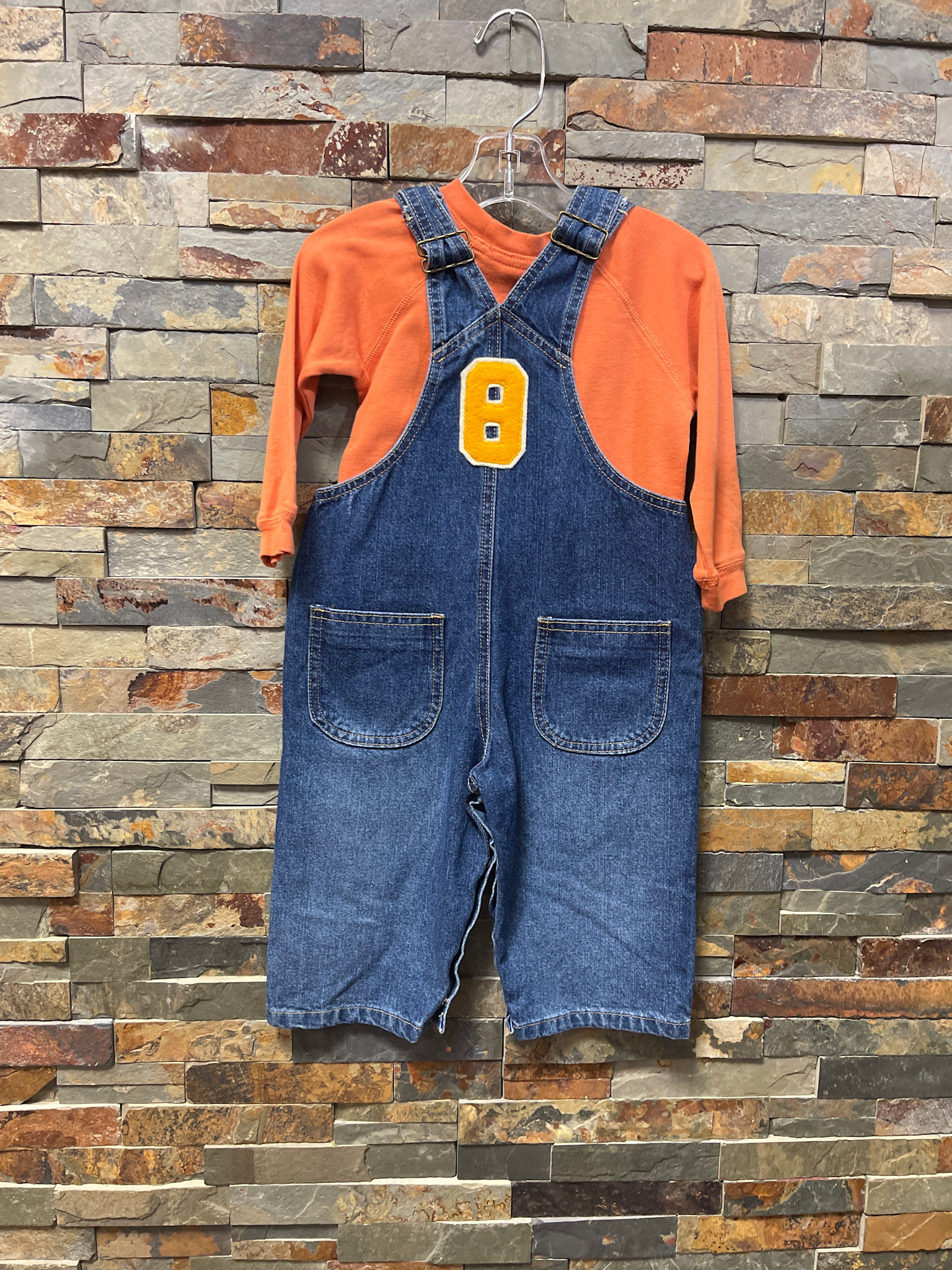 Denim Sports Bib Overalls with Orange Tee, Size 18M