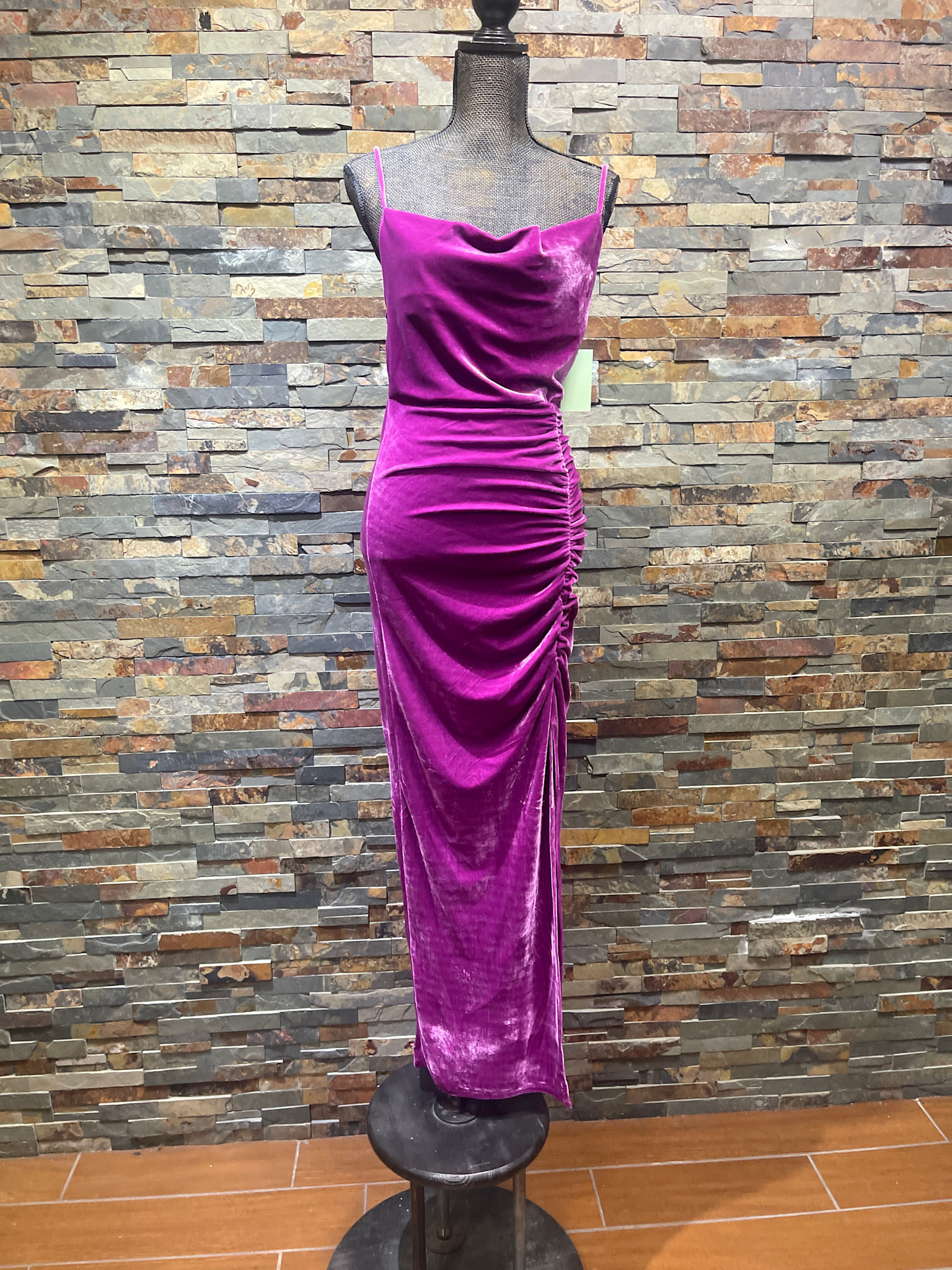 Fuschia Velvet Spaghetti Straps with Side Slit Gown, Size L