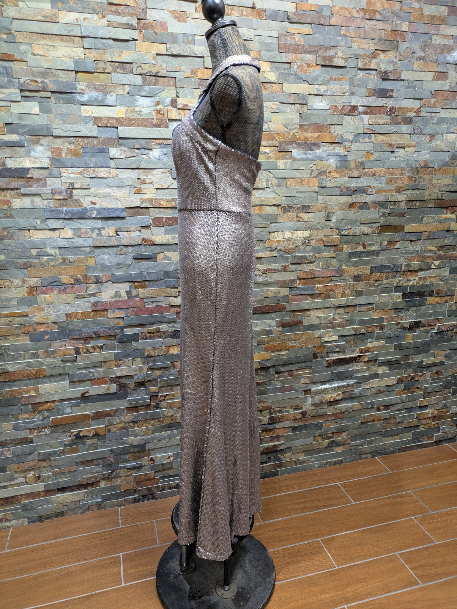 Gold Fully Sequin Navy Cross Strap Gown, Size 10