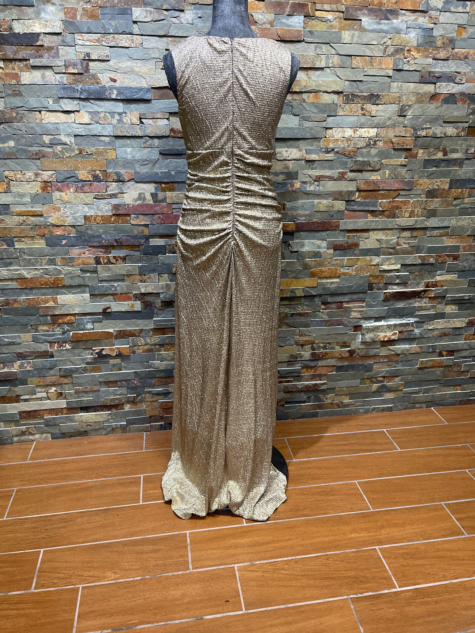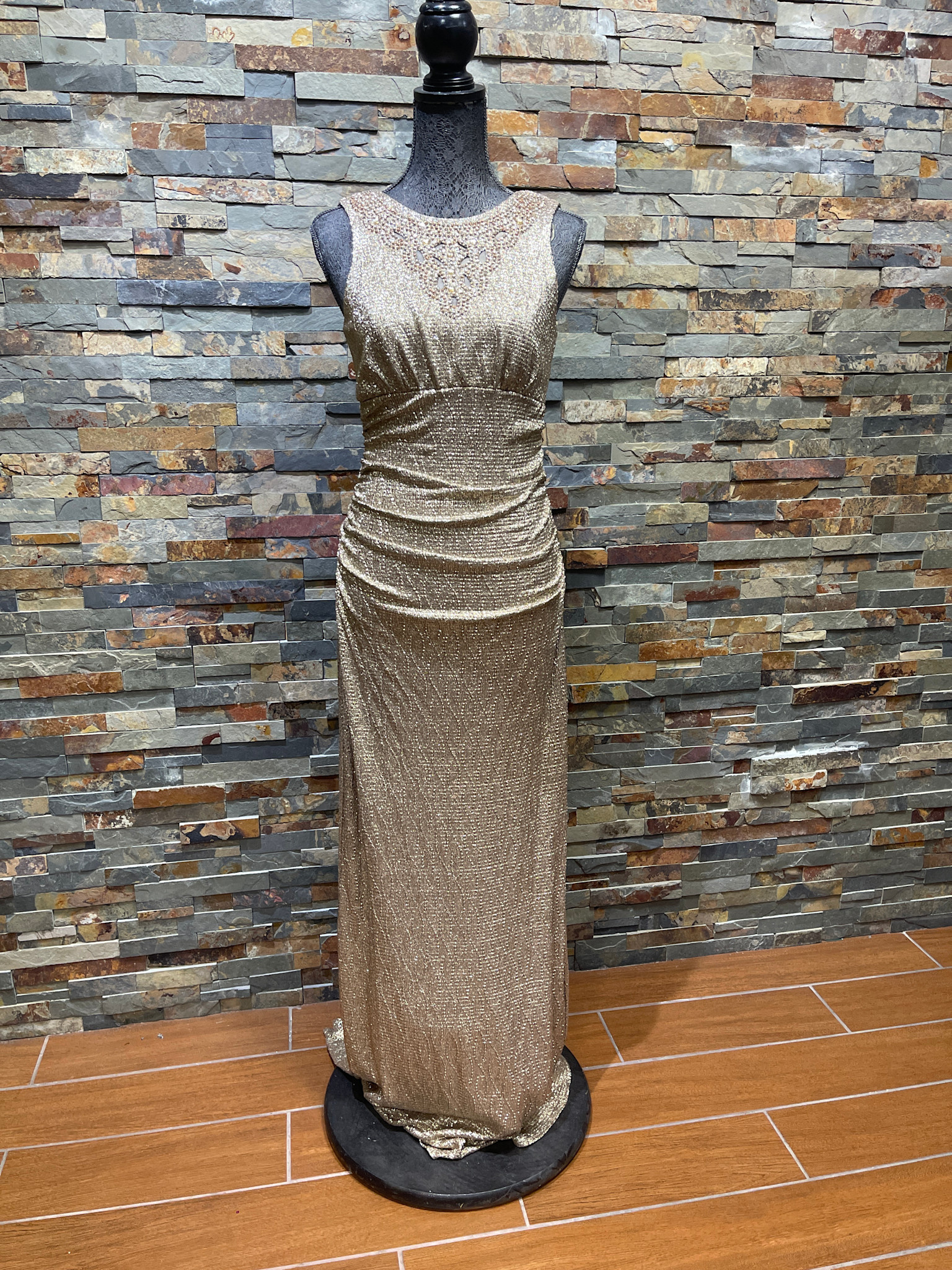 Gold Ruched Gown with Jeweled Collar Neckline, Size 4