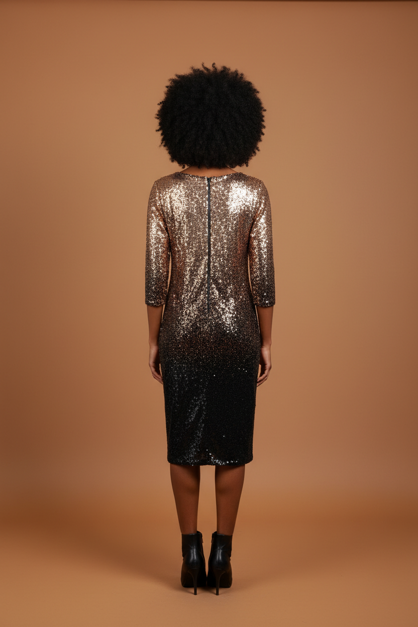 Gold to Black Sequin Ombre Dress, Size 16