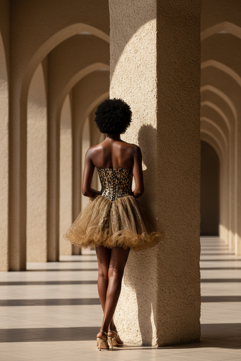 Golden Brown Animal Print Party Dress with Jeweled Bodice, Size 6