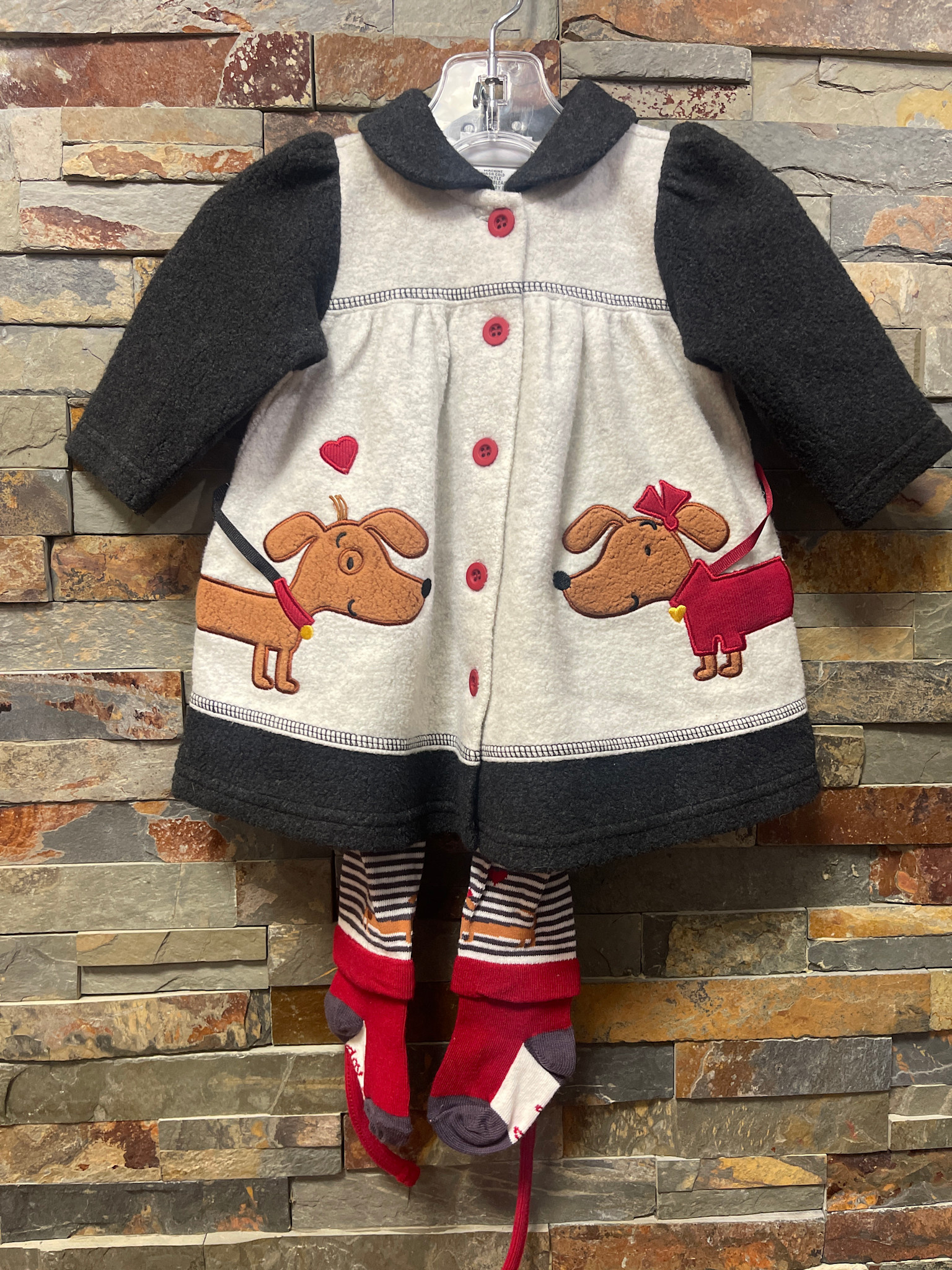 Gray & Black Dachshund Dress, Tights and Red Beret, Size 3M
