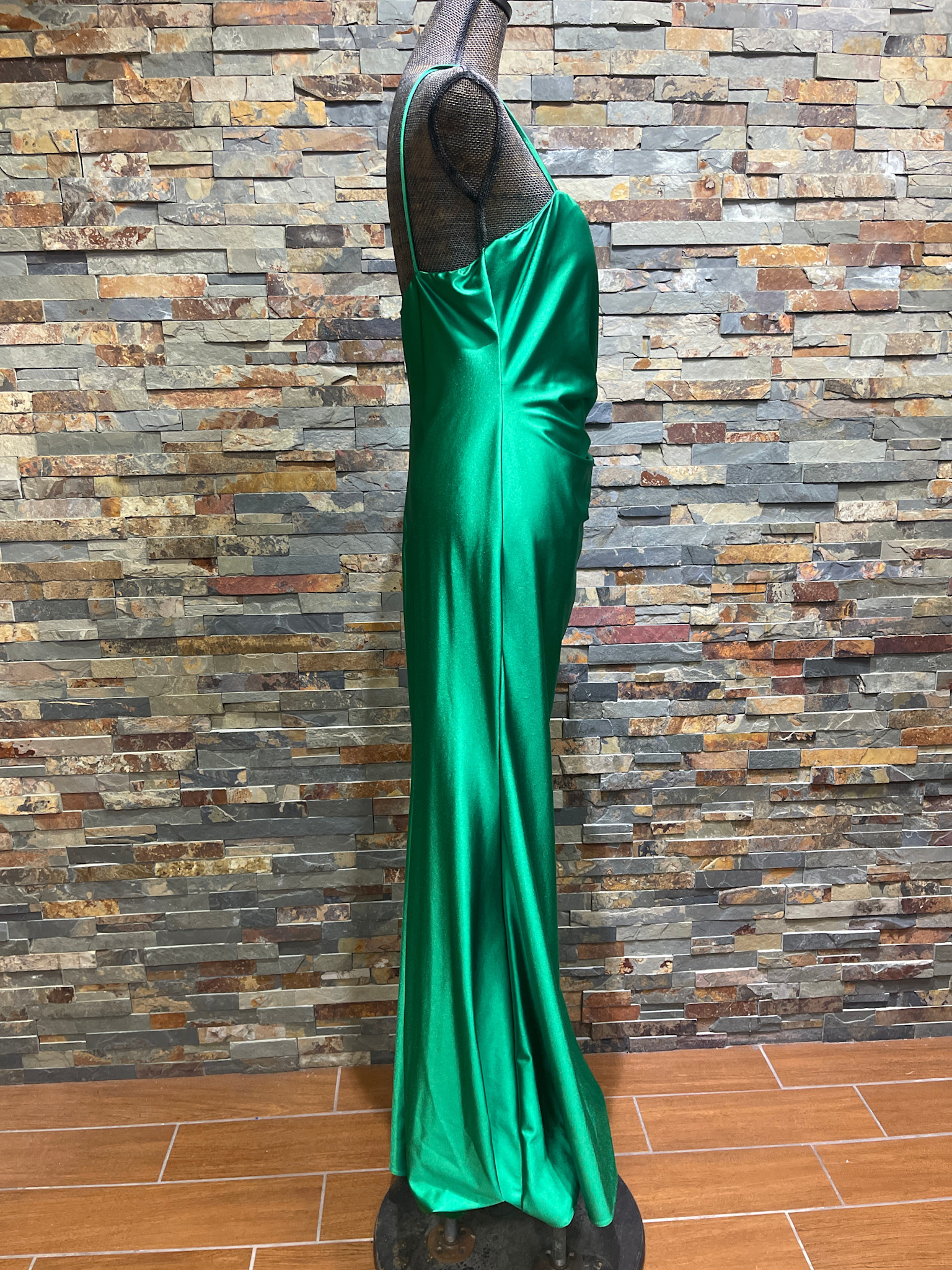 Kelly Green Spaghetti Strapped Ruched Gown, Size XL