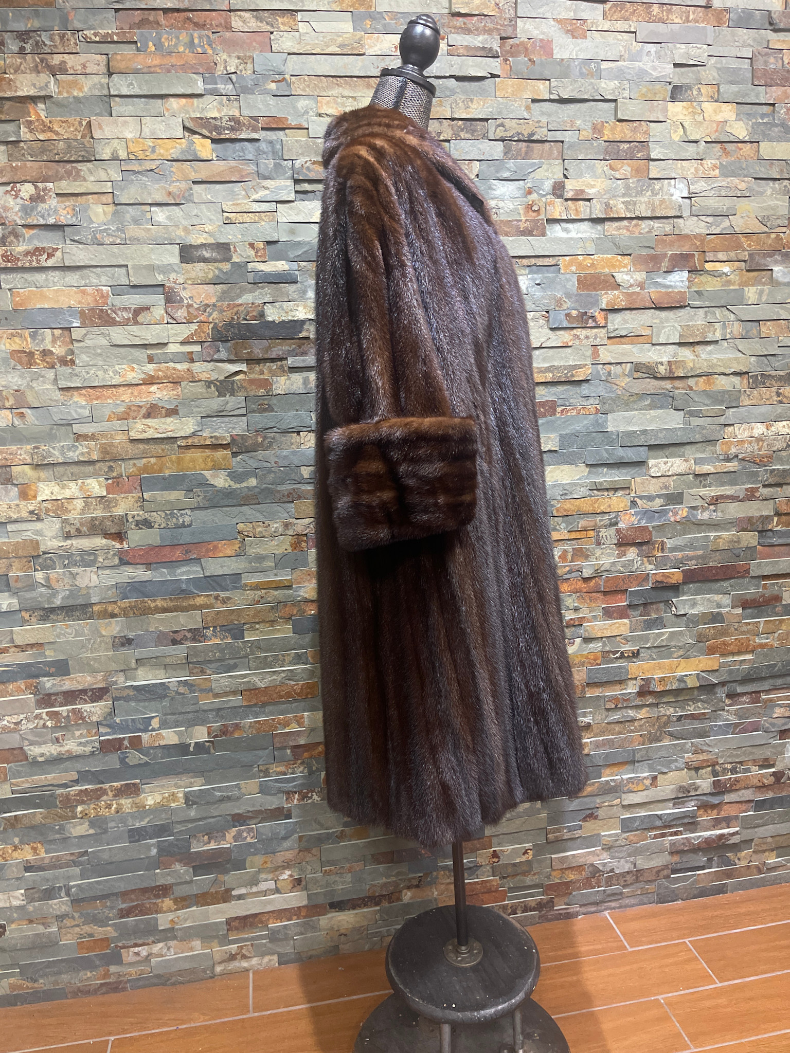 Mahogany Mink Swing Coat with Rolled Cuffs, Size M