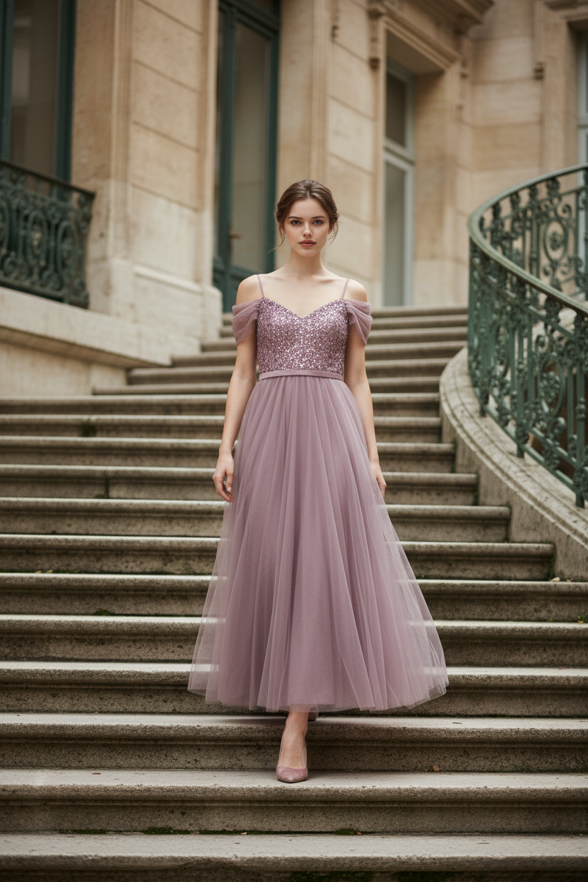 Mauve Pink Ballgown with Sequin Bodice, Size 6