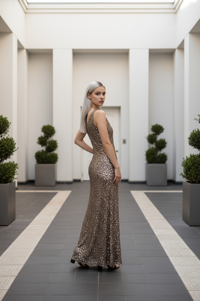 Nickel Gray Sequin Gown, Size 14