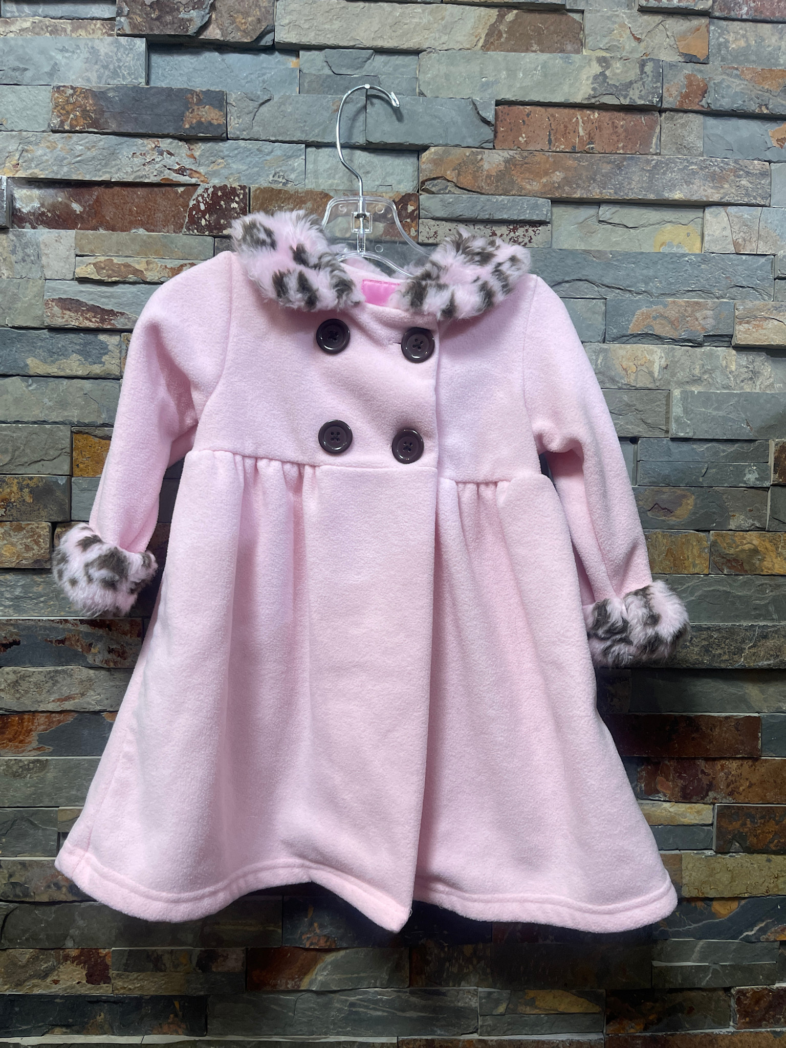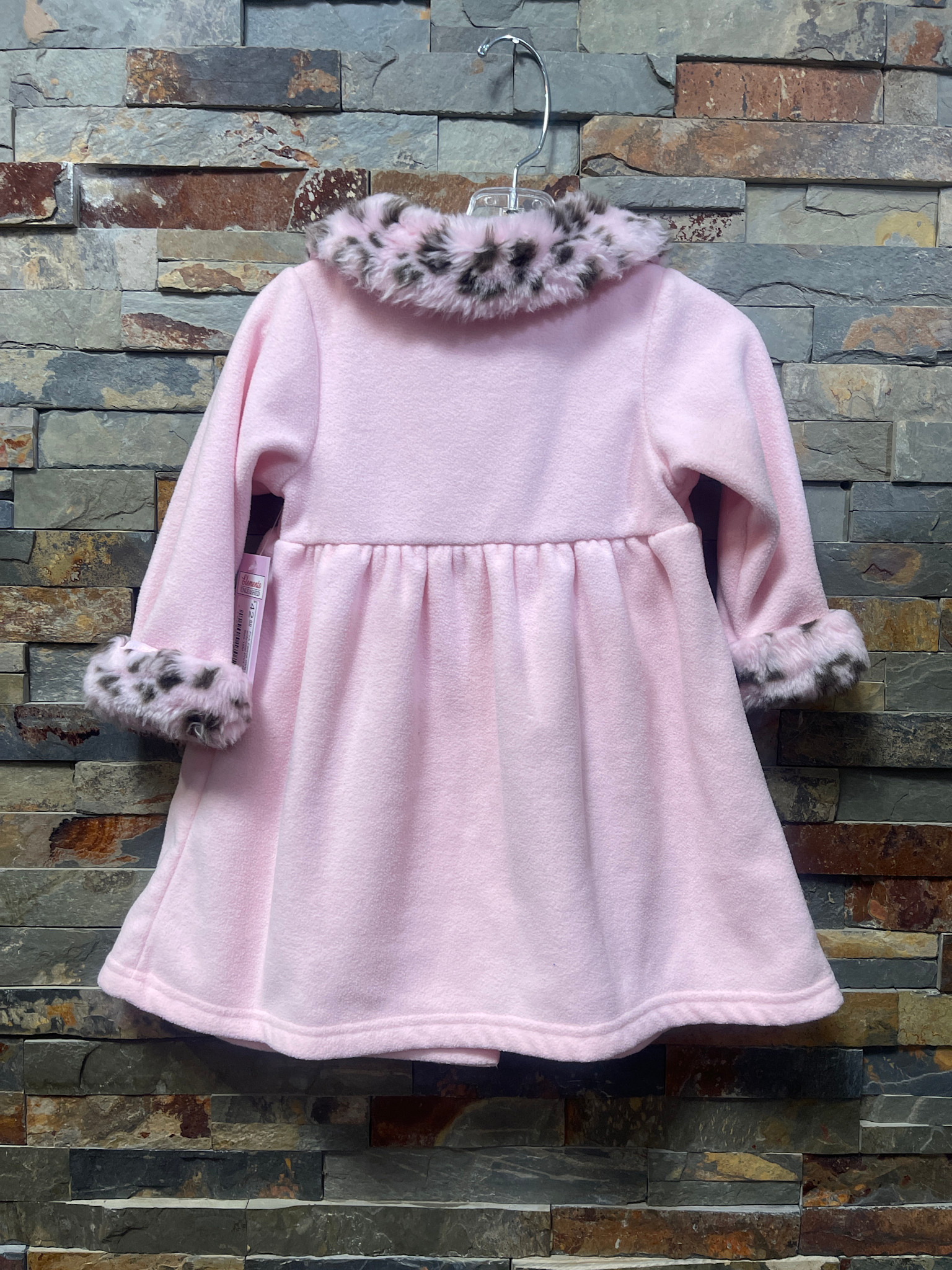 Pink Fleece Girls Coat w/Animal Print Trim, Size 18M