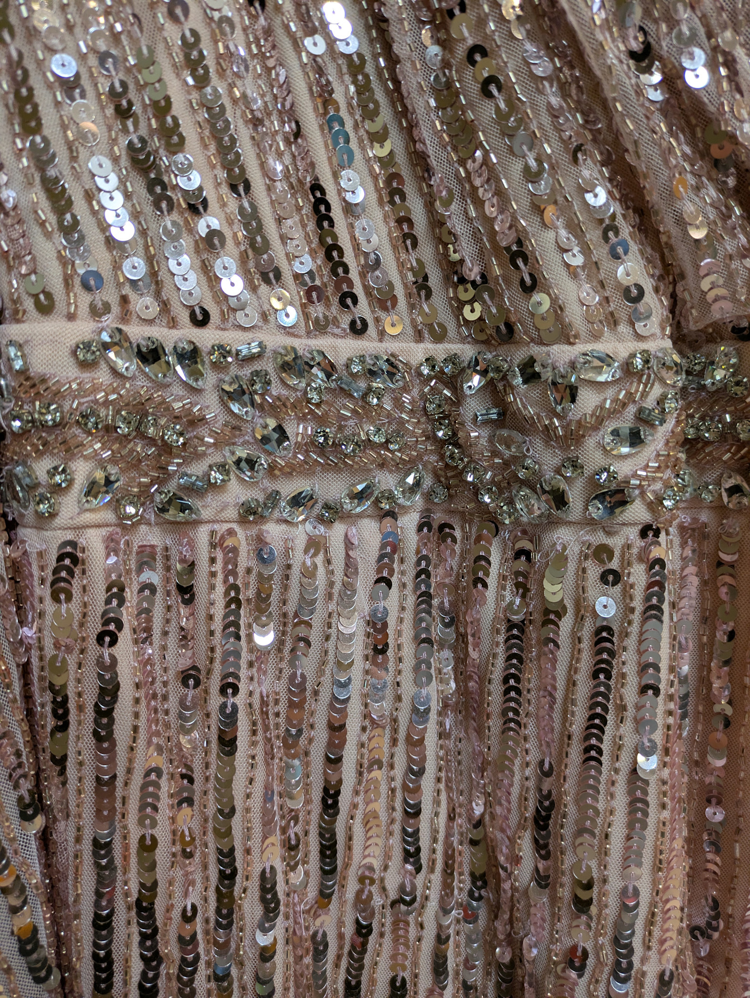 Pink Long Sleeve V-Neckline Full Sequin Slitted Gown, Size 16