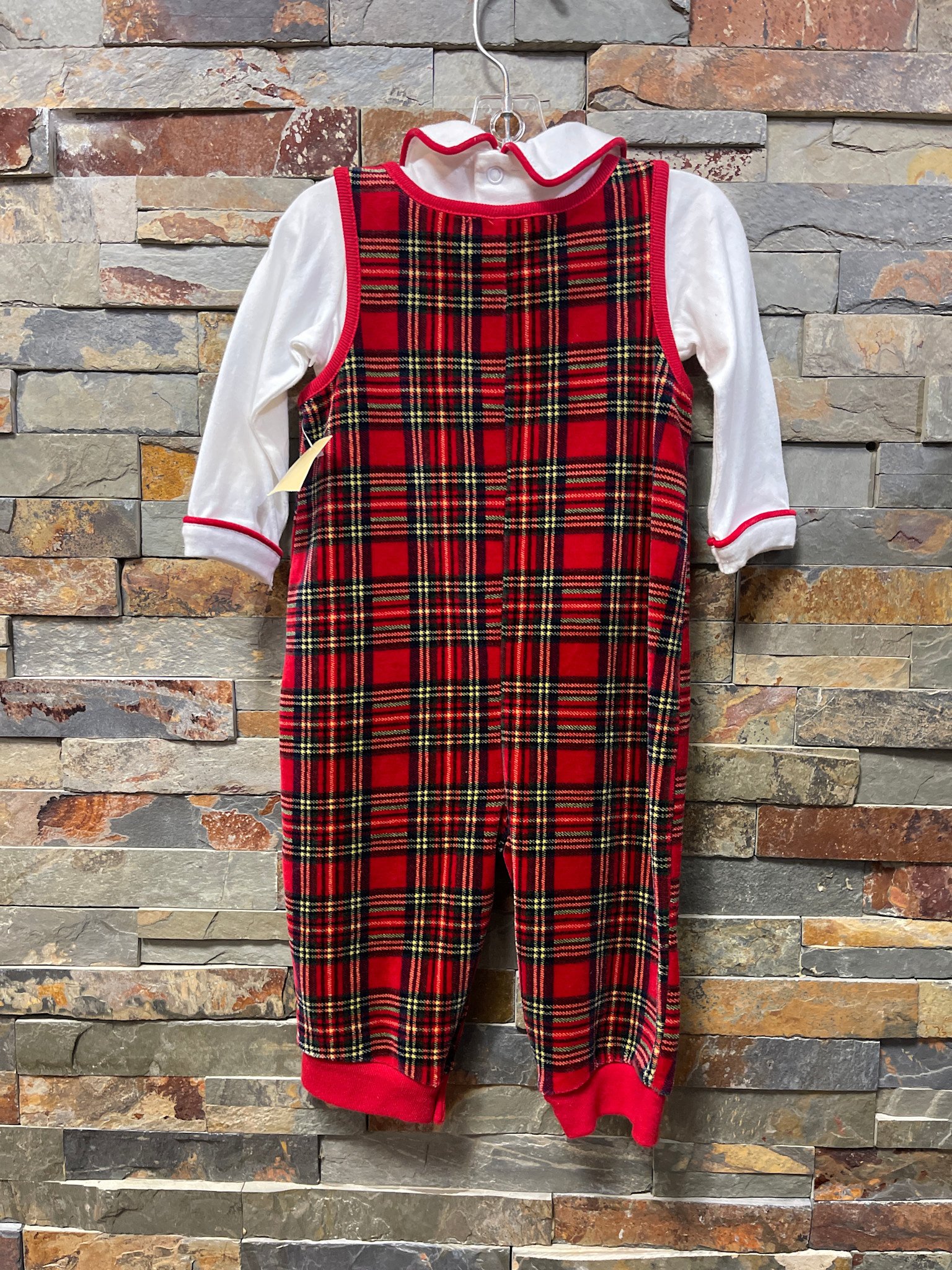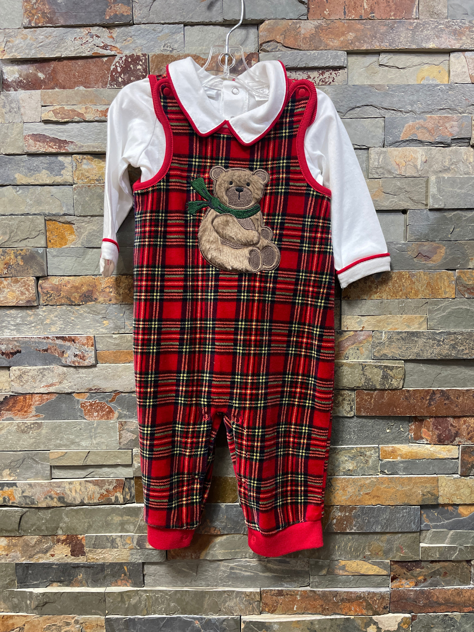 Red Plaid Teddy Bear Jumper with White Top, Size 3-6M