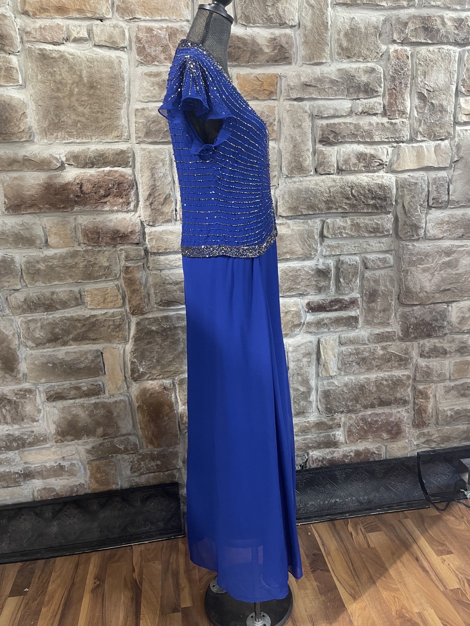 Cobalt Blue Beaded Gown w/Tie Waist, Size 16