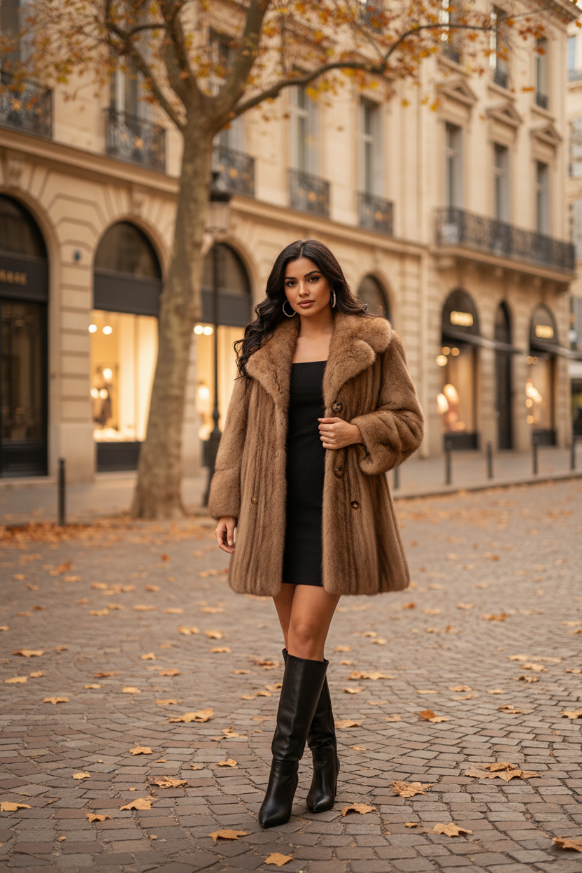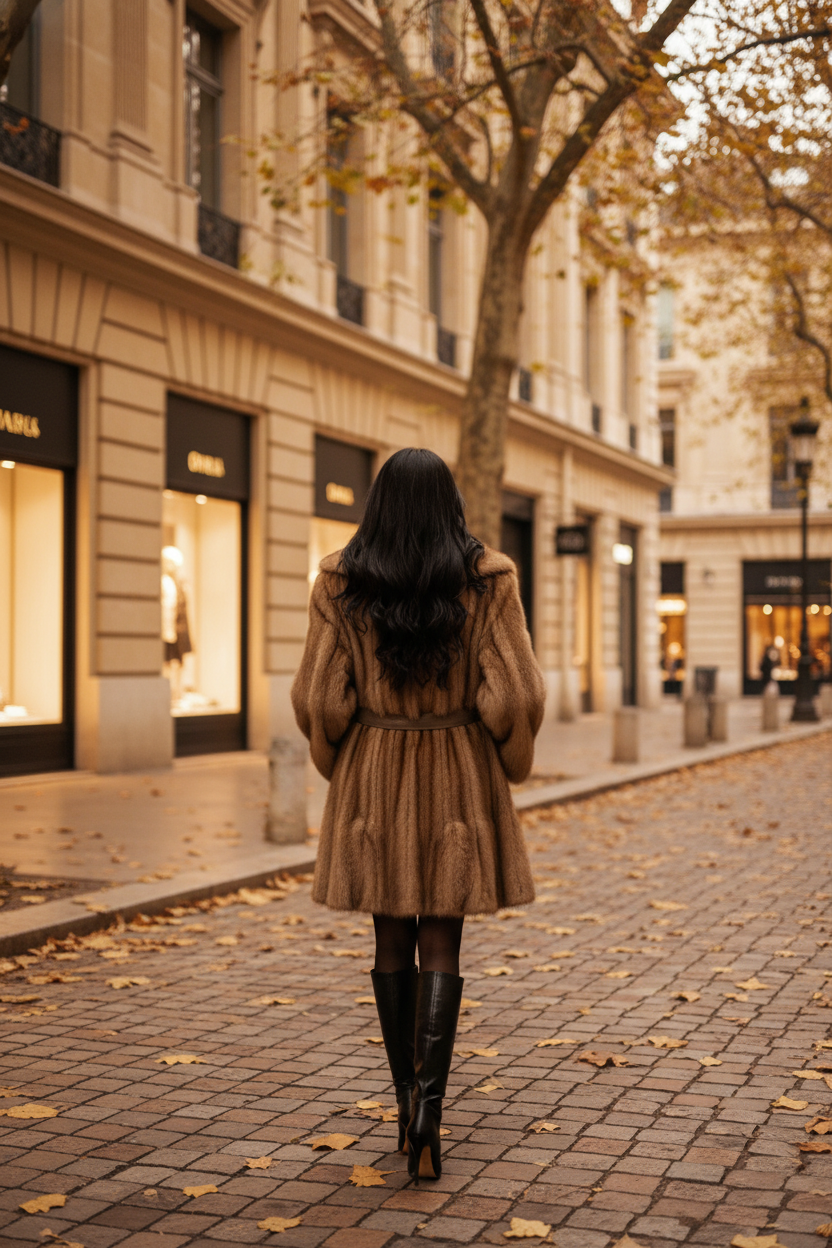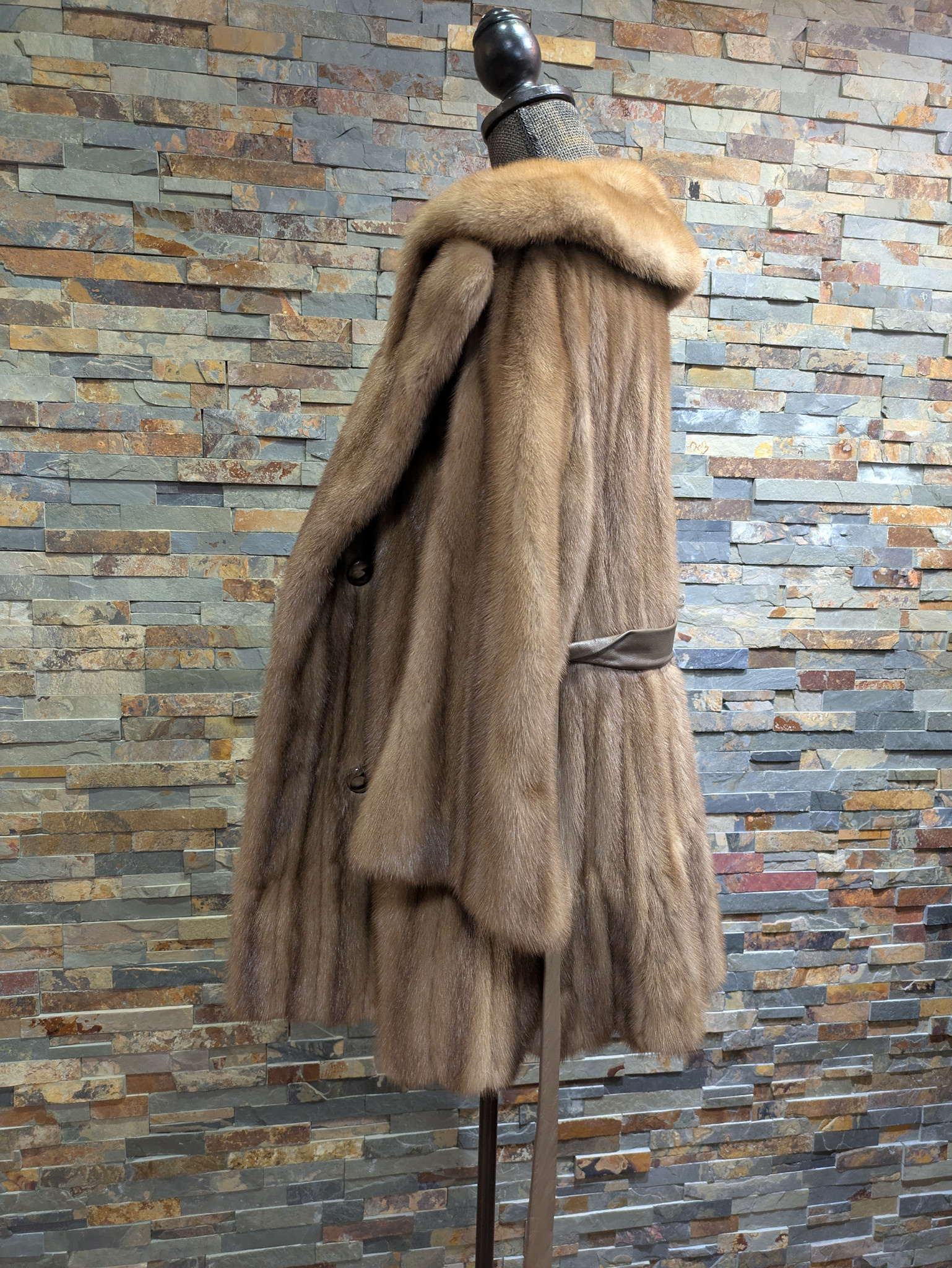 Ruffled Pastel Autumn Haze Mink Coat with Leather Belt and Notched Collar Size M