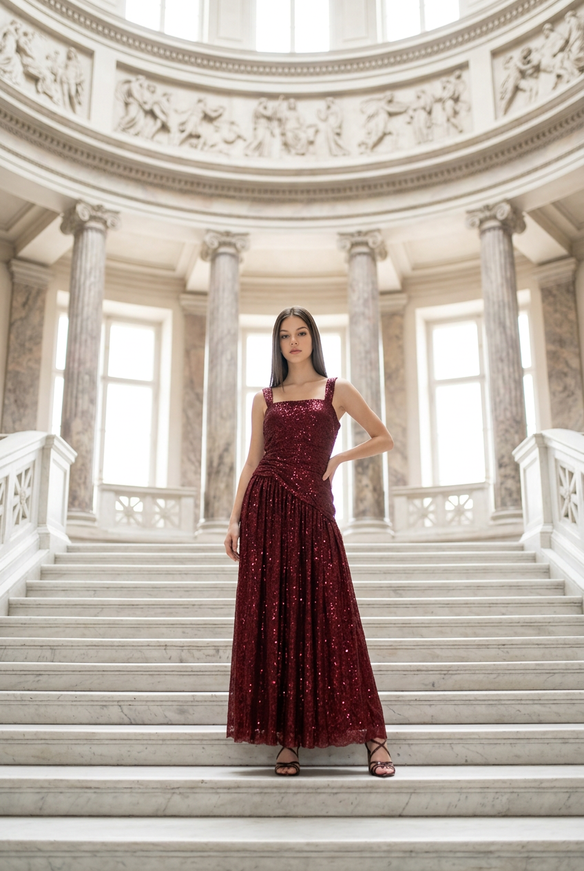 Sangria Red Sequined Gown with Slit, Size 12