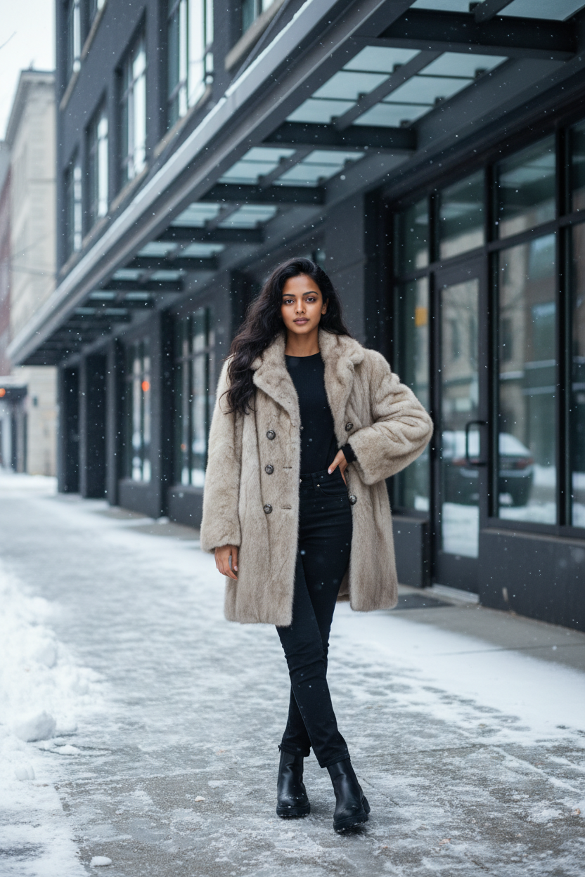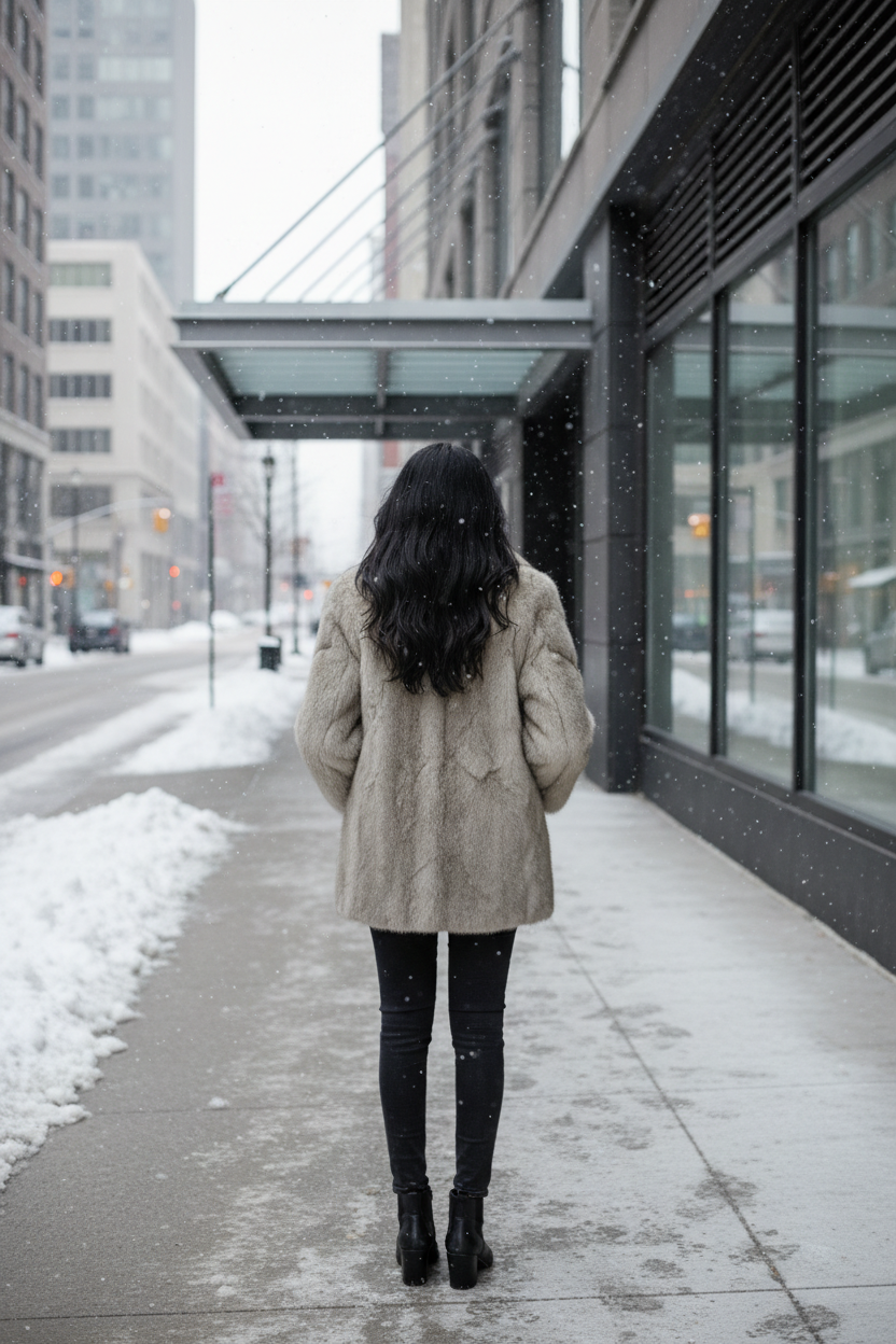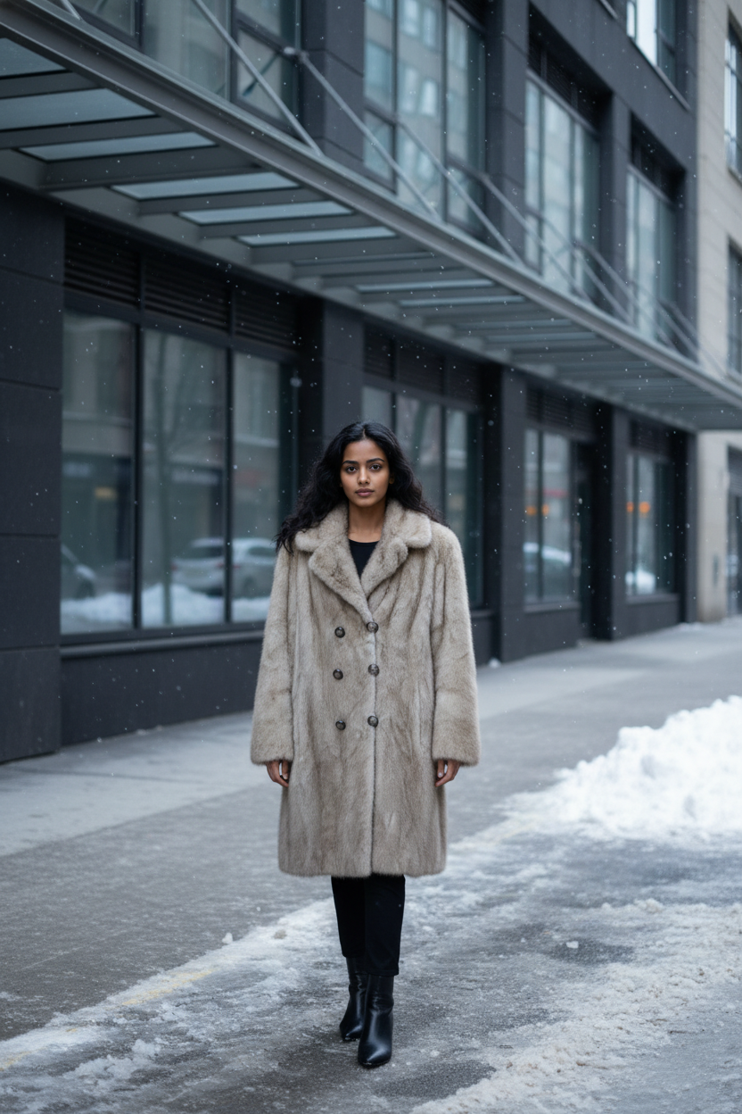Silver Grey Section Mink Stroller Coat with Notched Lapel Size M