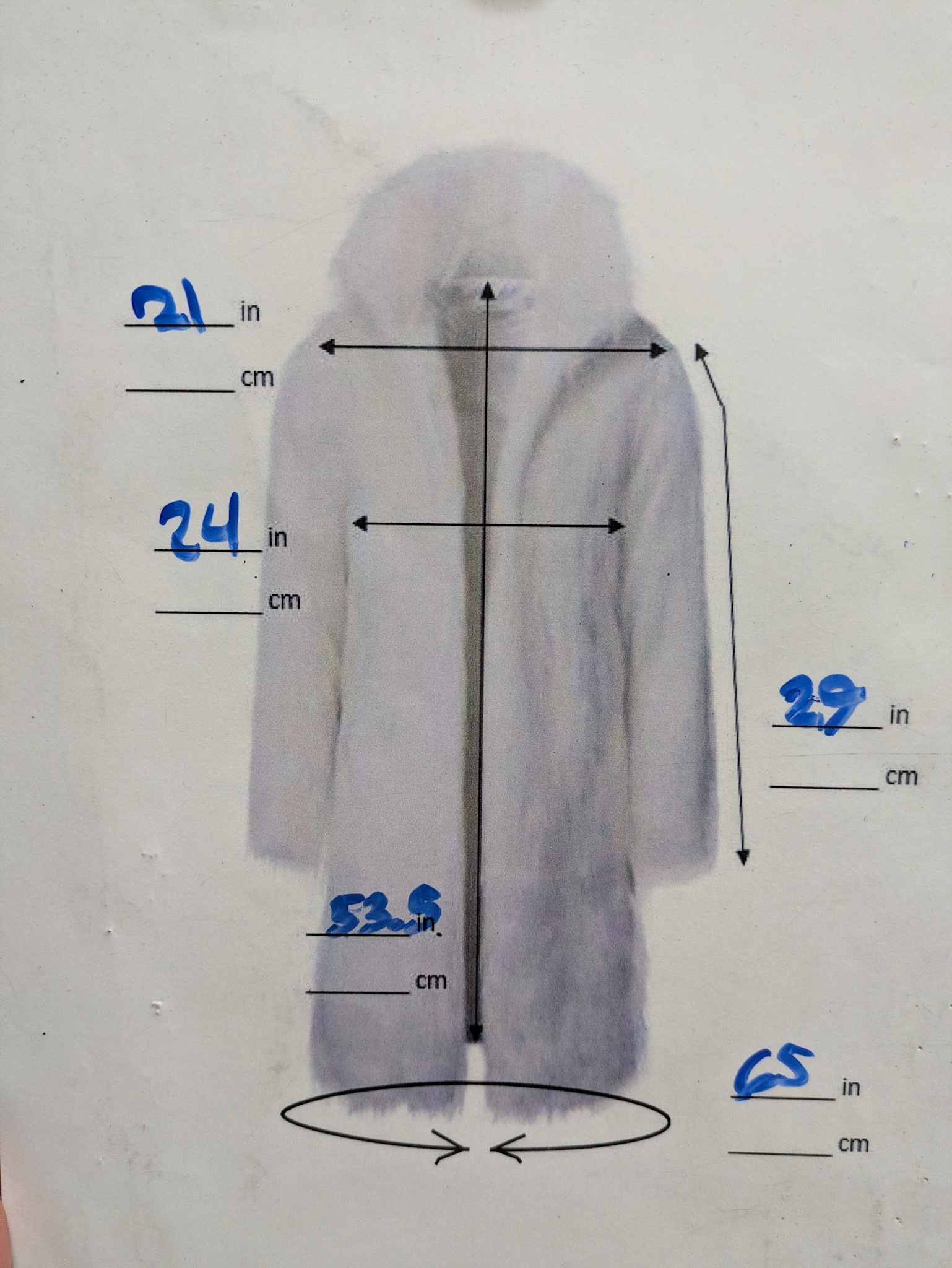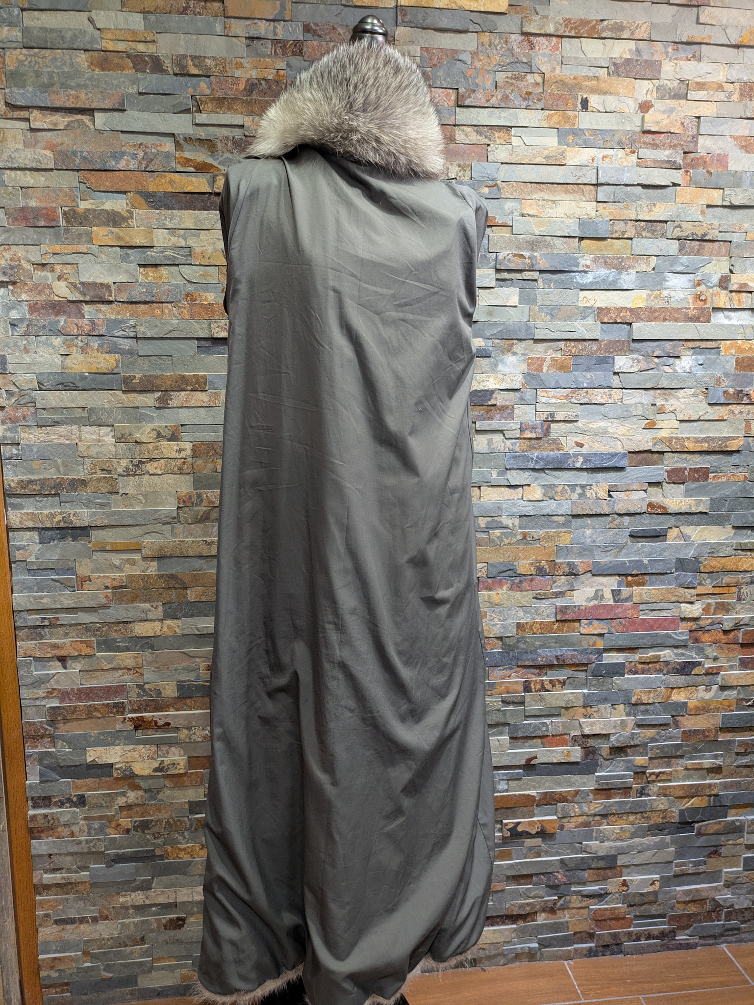 Silver Nutria Full Length Coat with Blue Indigo Frost Fox Fur Collar and Cuffs Size L