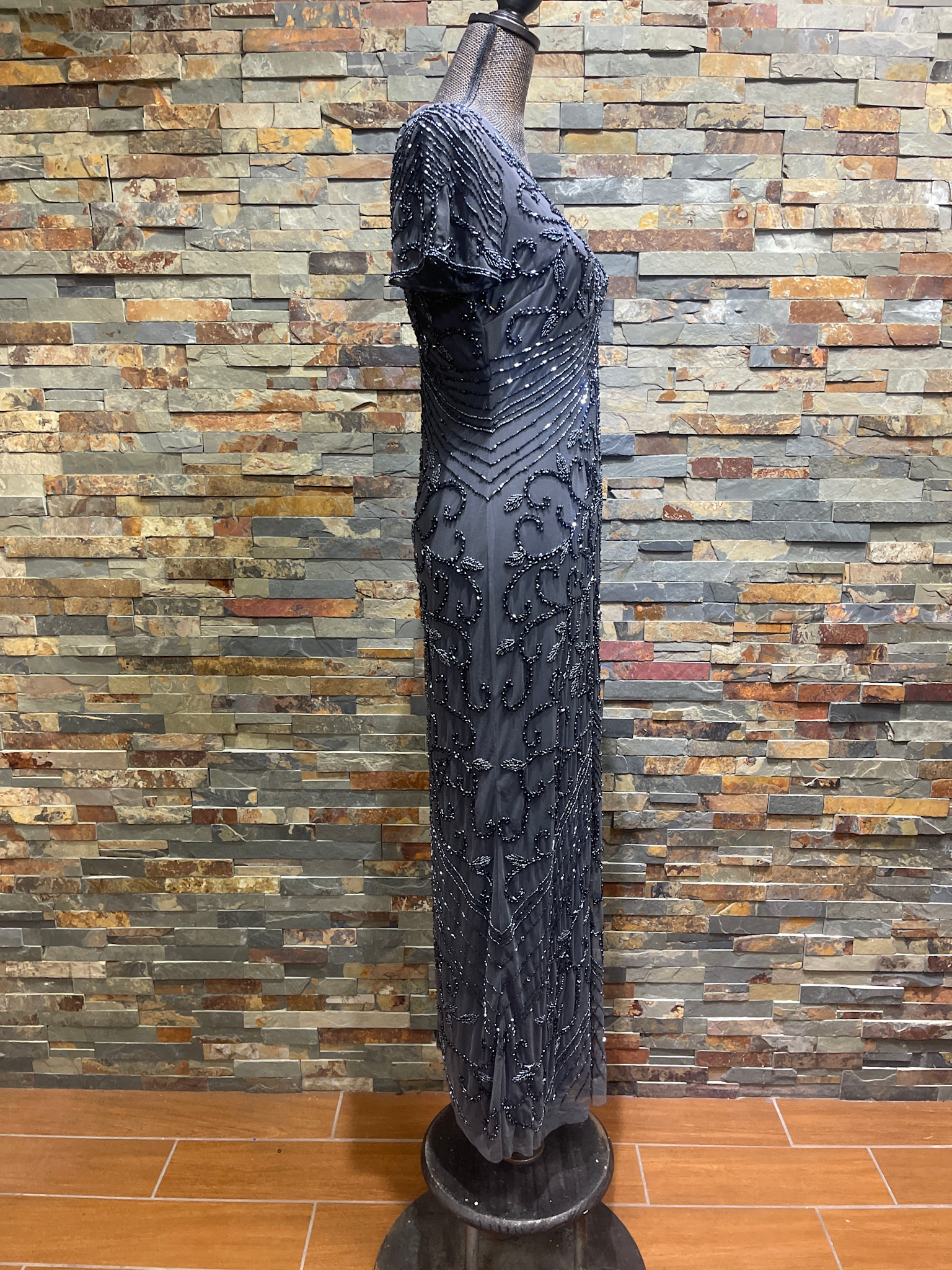 Slate Gray Beaded Double V Gown, with Shortsleeves, Size 6