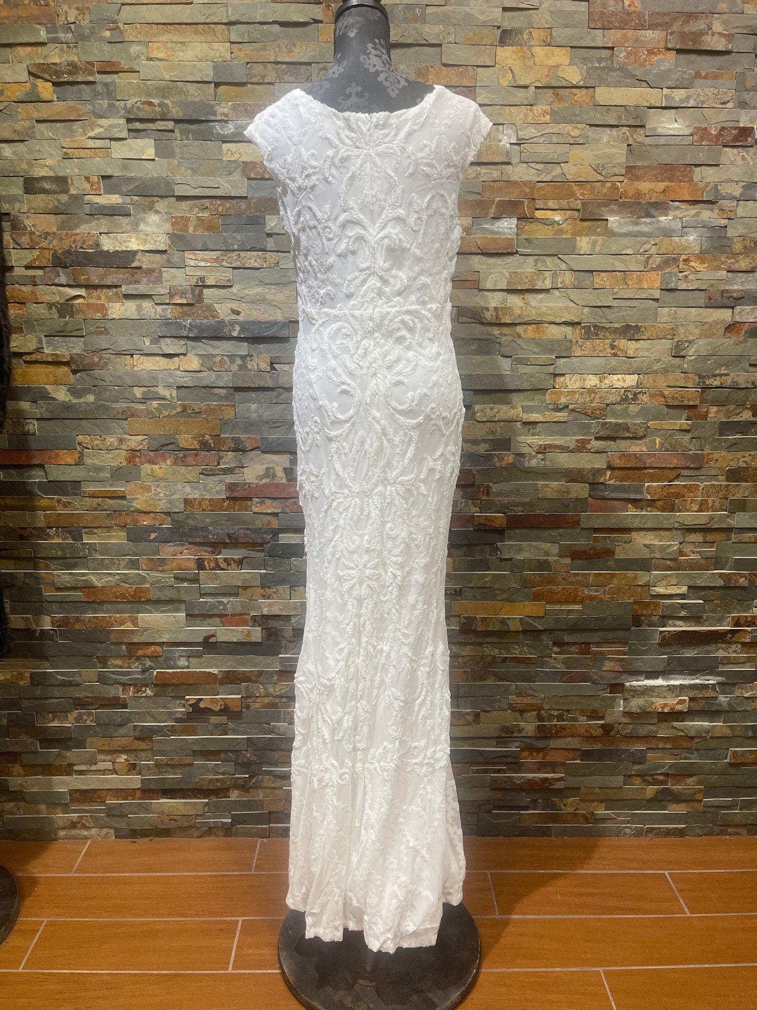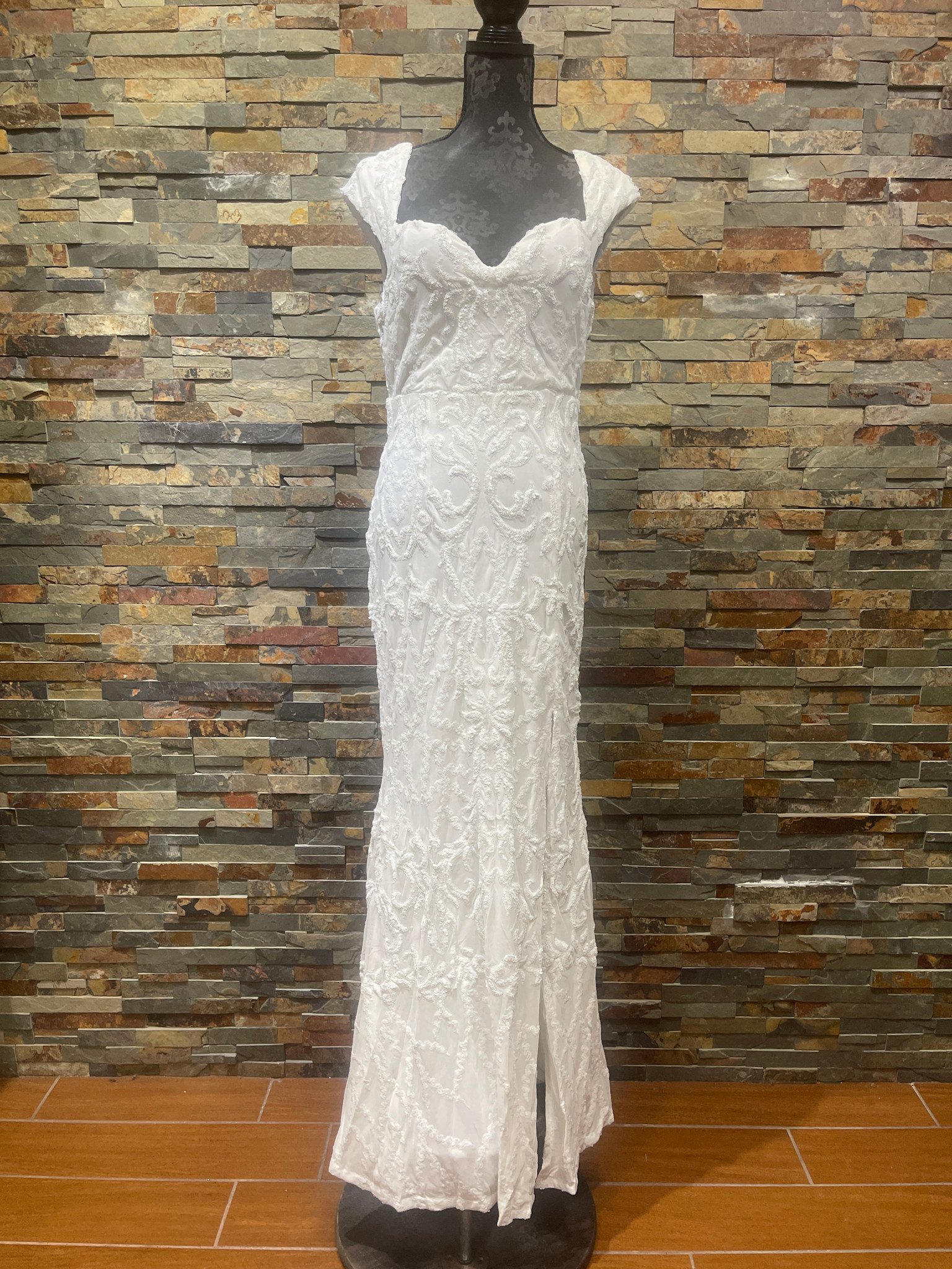 White Sequined Designed Cap Sleeve With Front Slit Size XL